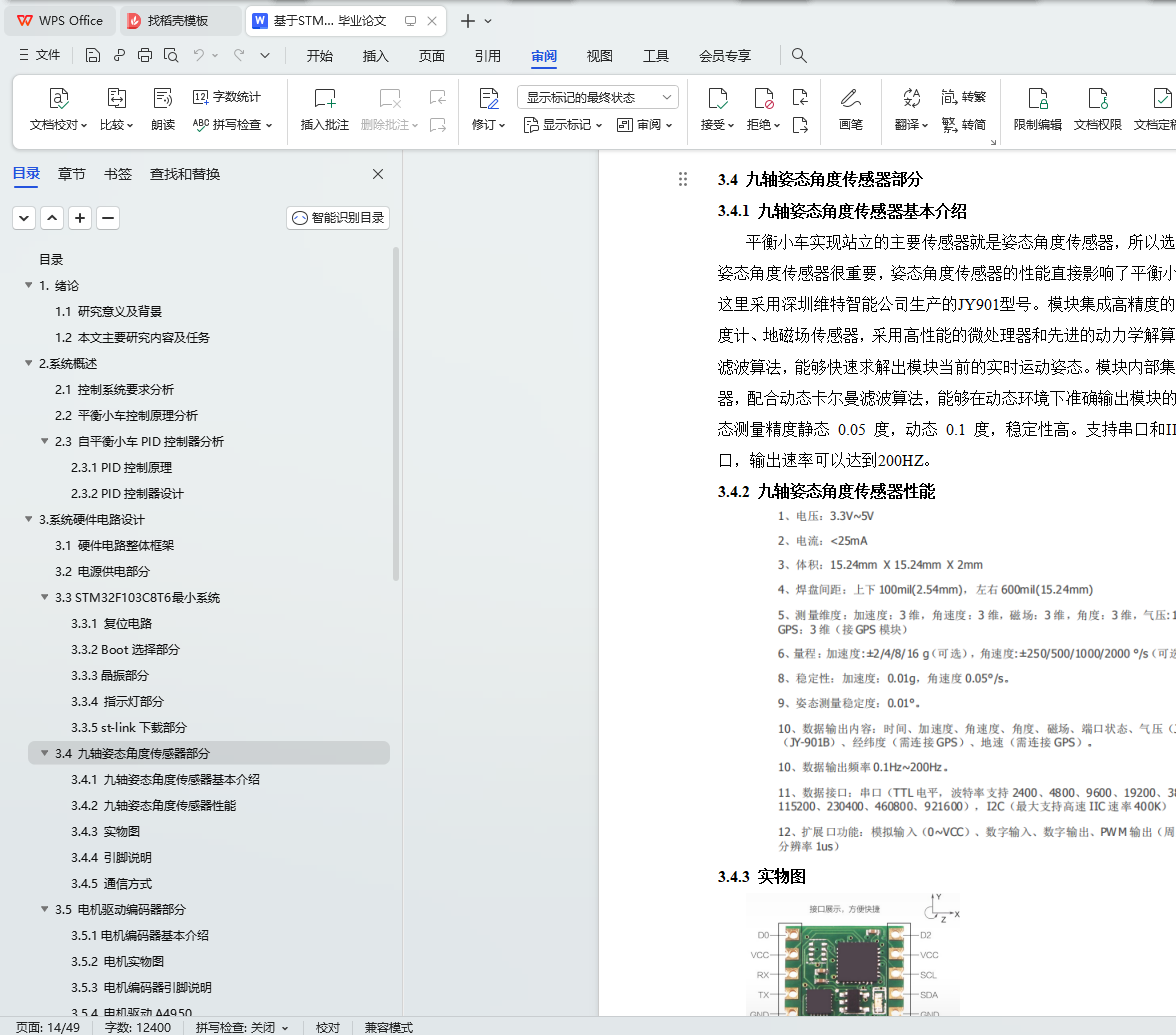 3.4 九轴姿态角度传感器部分