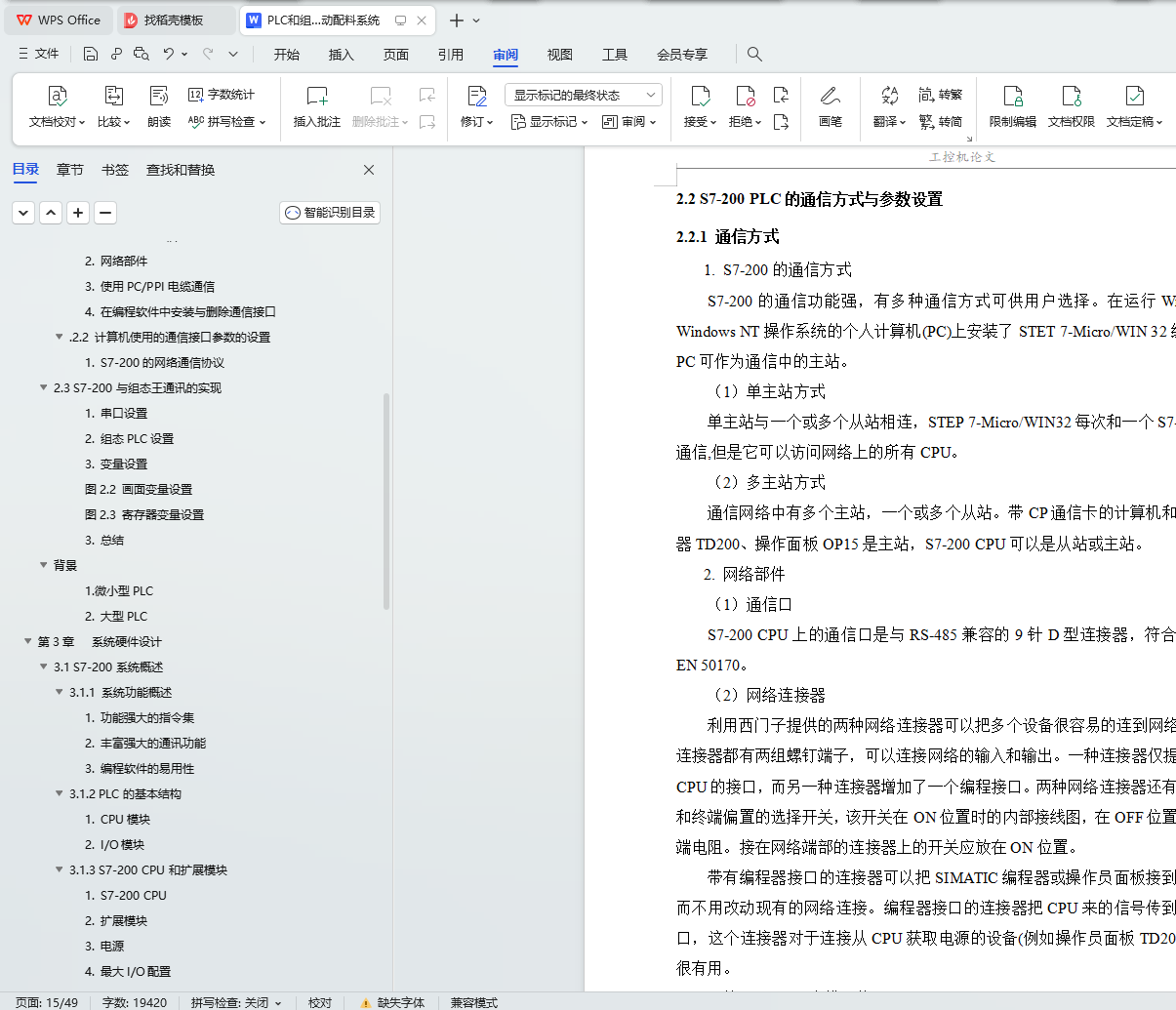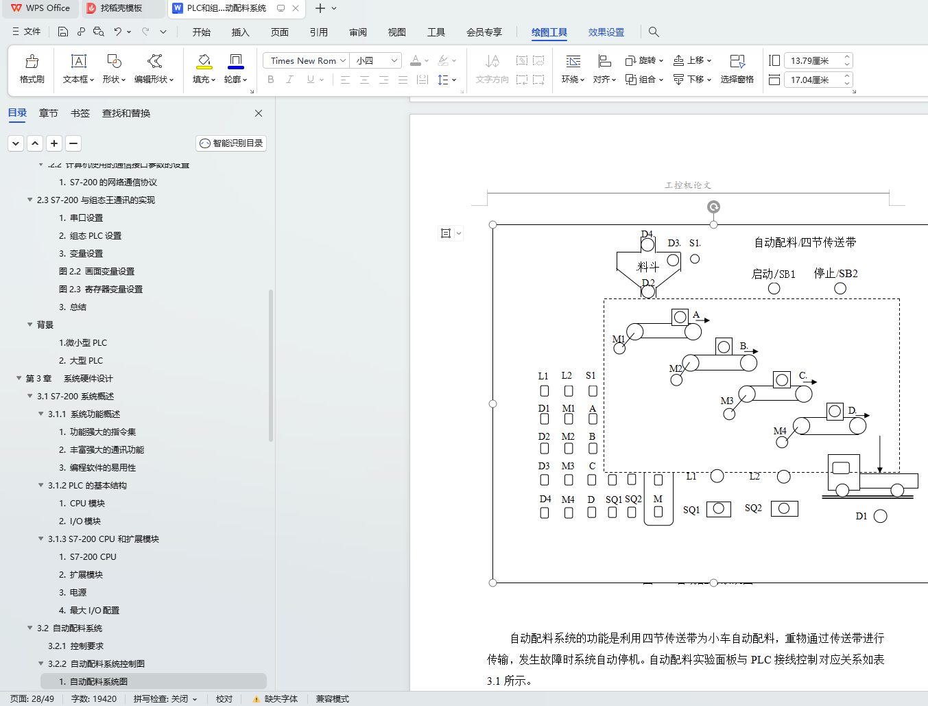 本文的主要内容包括对生产过程控制系统发展和现状的概述、配料系统工作原理和配料控制系统的总体设计,重点描述了包括硬件设计、编程环境及软件设计在内的西门子PLC在配料系统中应用的一些细节、组态王组态软件及其在上位机监控系统中一些基本设计,以及PLC与上位机之间的通讯。