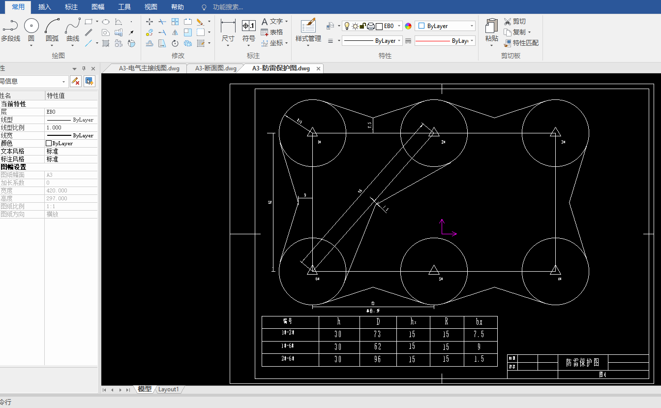 在本设计中通过对任务书的详细分析,并根据设计规程手册中的要求,首先确定了发电厂的变压器容量,并通过比较选择了主接线的形式。在进行完短路计算后,根据计算结果选择了设计中所需的各种器件,并进行了校验。通过所学的课本中的知识和翻阅资料确定了本设计中发电厂的配电系统,自动装置及继电保护系统。最后根据配电系统画出本设计中的主接线图,断面图和平面图,并根据所查尺寸设计出防雷保护,画出防雷保护设计图纸最终完成本次设计。