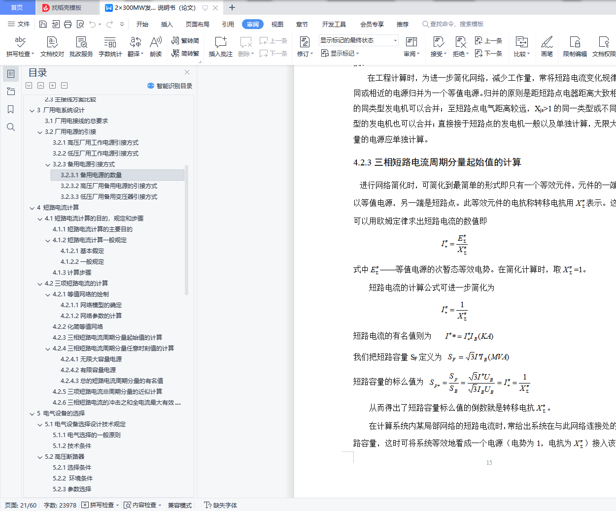 关键词:发电厂;2*300MW;厂用电系统;主接线图;短路计算