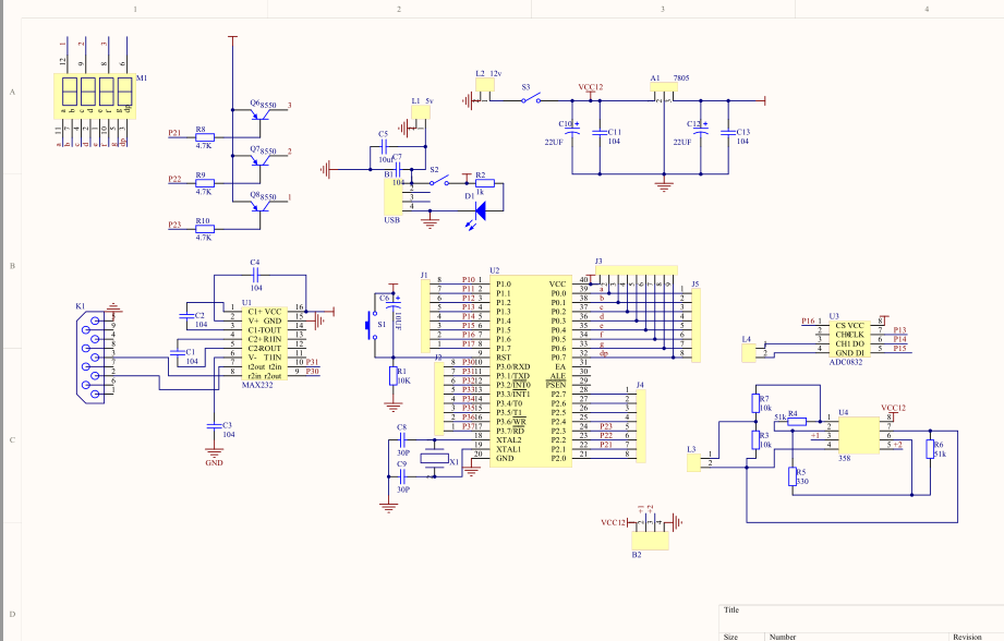本设计采用以stc89C52单片机为核心的低成本、高精度、微型化数字显示压力的硬件电路和软件设计方法。整个电路采用模块化设计,由主程序、初始化子程序、显示子程序等模块组成。压力传感器的信号经单片机综合分析处理,实现压力测量并显示。在此基础上设计了系统的总体方案,最后通过硬件和软件实现了各个功能模块。相关部分附有硬件电路图、程序流程图。