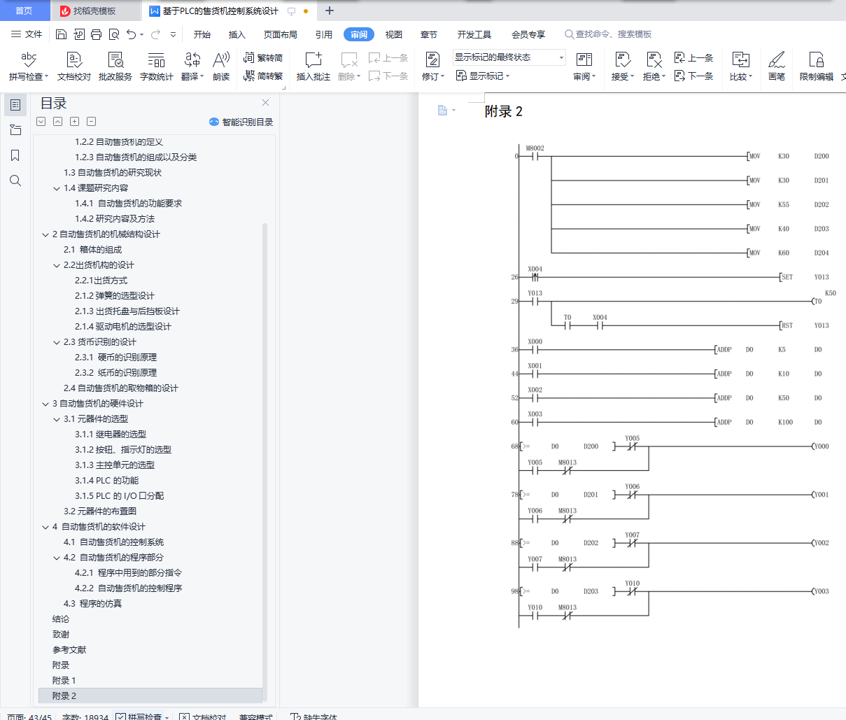 本次的设计中采用的是三菱FX2N-32MR-001型号的PLC作为主控单元来进行控制操作。在出货装置的选择上,采用的是直流电机带动着弹簧,推动饮料的出货方式。其余机械部分包括箱体,取物箱等。在控制上,除了主控单元选用PLC外,还需要使用到继电器。最后编写出程序完成对整个售货机系统的控制,包括对出货电机驱动的控制、对指示灯亮的控制以及完成投币退币的控制。编写完成程序后使用仿真软件进行仿真调试。