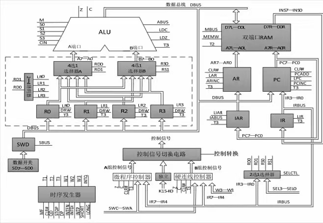 (1)融会贯通计算机组成原理各章节教学内容,通过知识的综合应用,加深对CPU各模块工作原理及相互联系的认识,建立清晰的整机概念。