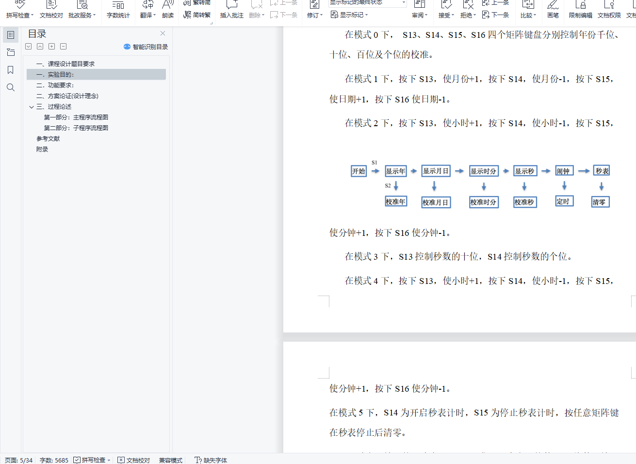 目录一、课程设计题目要求 1一.实验目的: 1二.功能要求: 1二、方案论证(设计理念) 2三、过程论述 3第一部分:主程序流程图 4第二部分:子程序流程图 5参考文献 15附录 16一、课程设计题目要求一.实验目的:课程标志性内容的设计理解和综合运用,鼓励独立性设计和功能扩展的创新实践。二.功能要求:1. 基本性要求通过按键切换完成以下功能:(1)显示北京时间;(2)能够校准时间;(3)使用汇编语言;(4)时、分、秒之间或年、月、日间以小数点分隔;2.发挥性要求(1) 显示公历日期(2) 能够校准日期(3) 运动秒表(4) 闹钟功能(5) PC联机校准时间等
