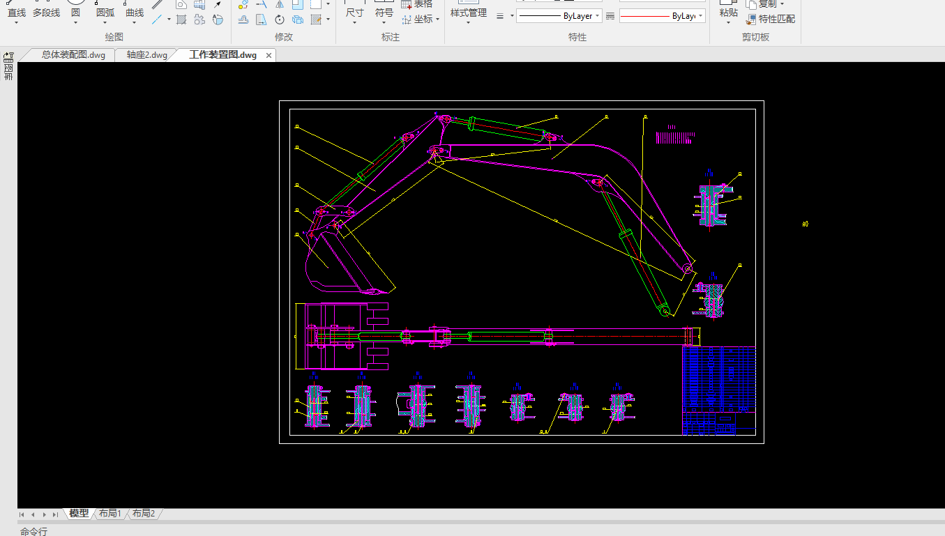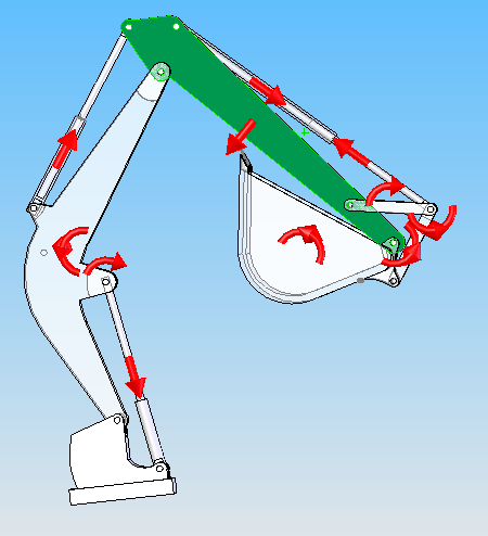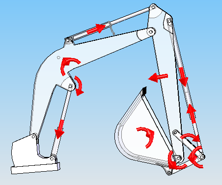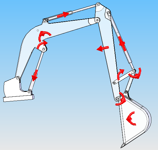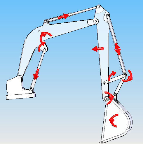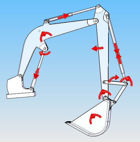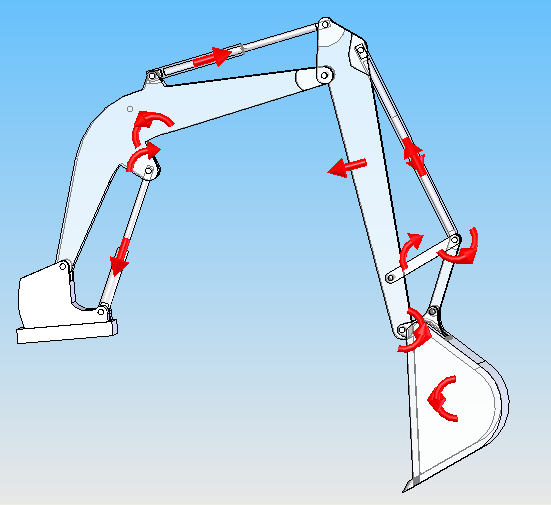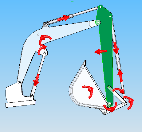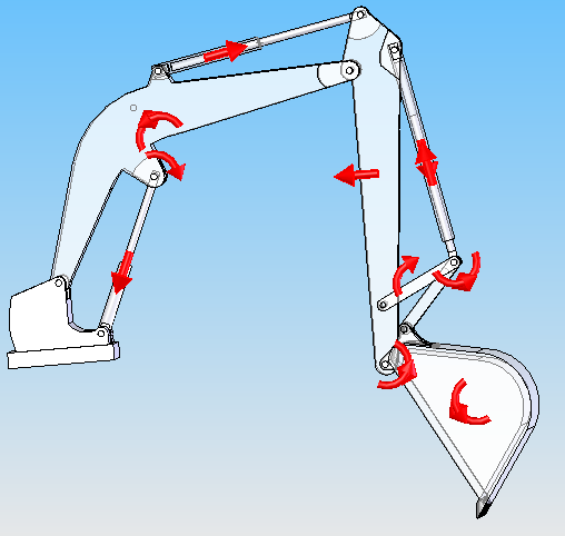 Key words: hydraulic excavator; working device; hydraulic system; motion simulation; CAD
