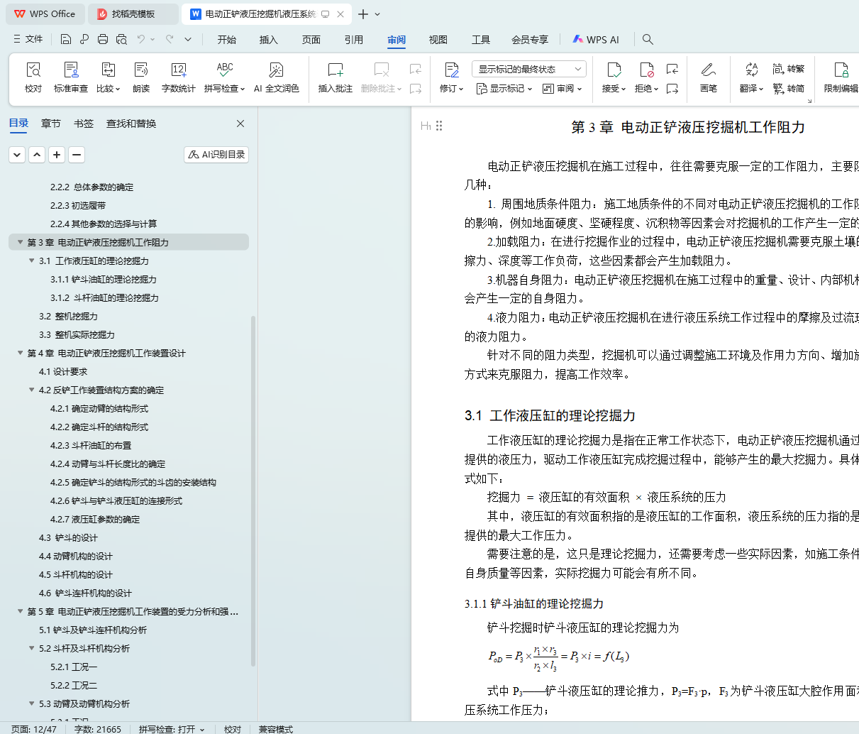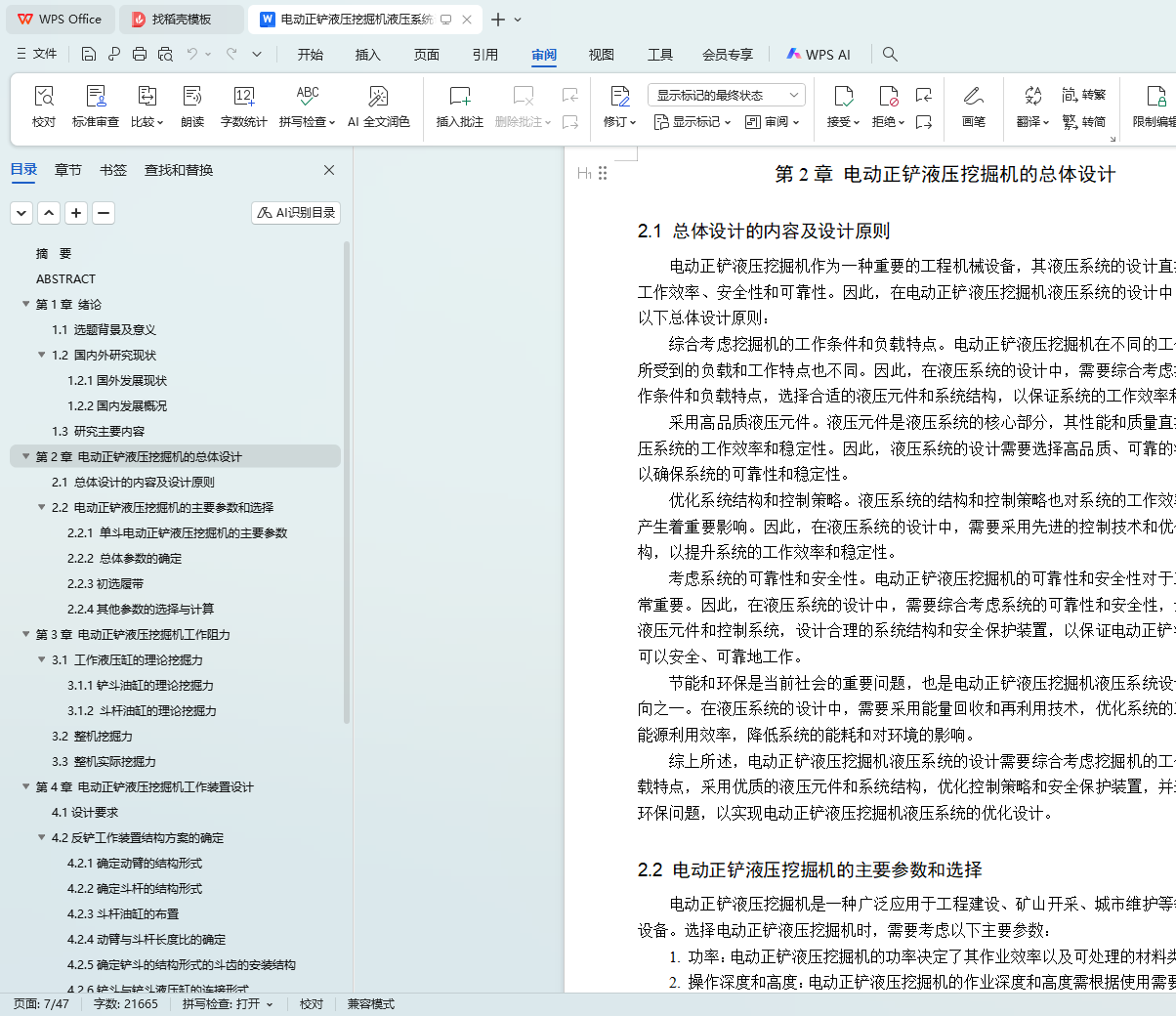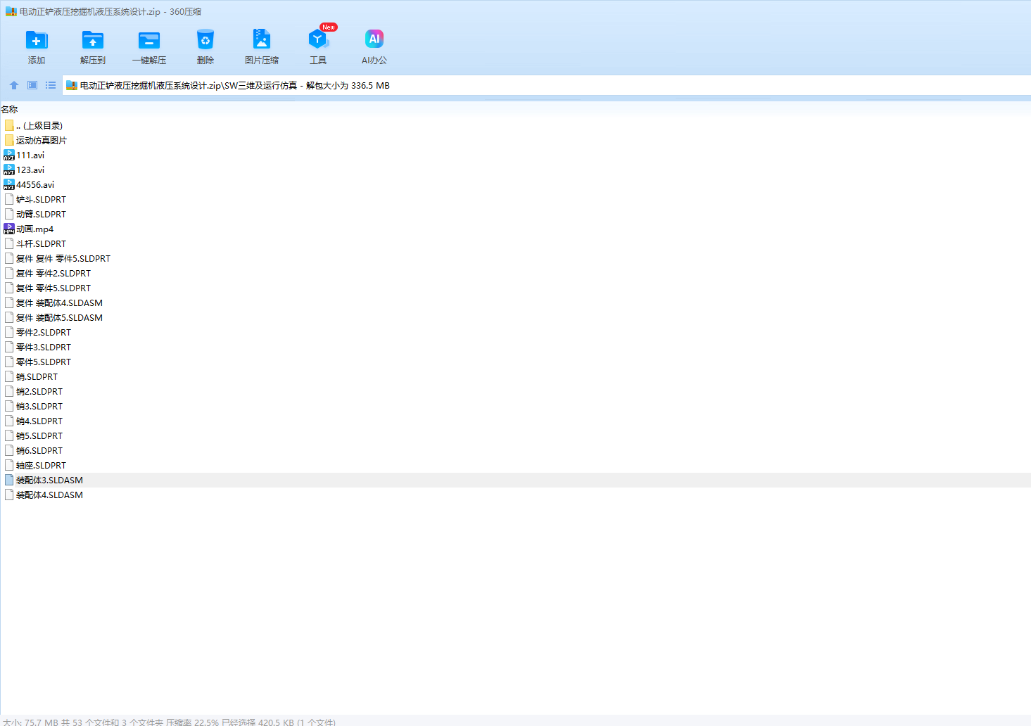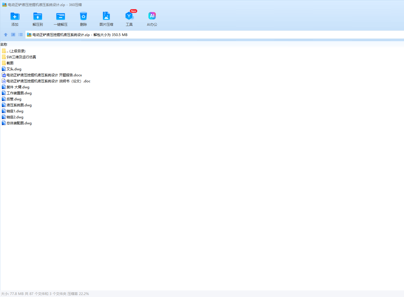 设计计算包括了液压泵、液压缸、阀组等液压元件的选型和匹配,以及系统压力、流量等参数的计算。本文还对液压系统进行了动态仿真模拟,通过仿真结果进一步验证了设计的正确性和合理性。在实际应用中,该液压系统具有稳定、高效、能耗低等优点,满足了电动正铲液压挖掘机的工作要求。本文的研究成果可为类似电动正铲液压挖掘机的设计和优化提供参考。