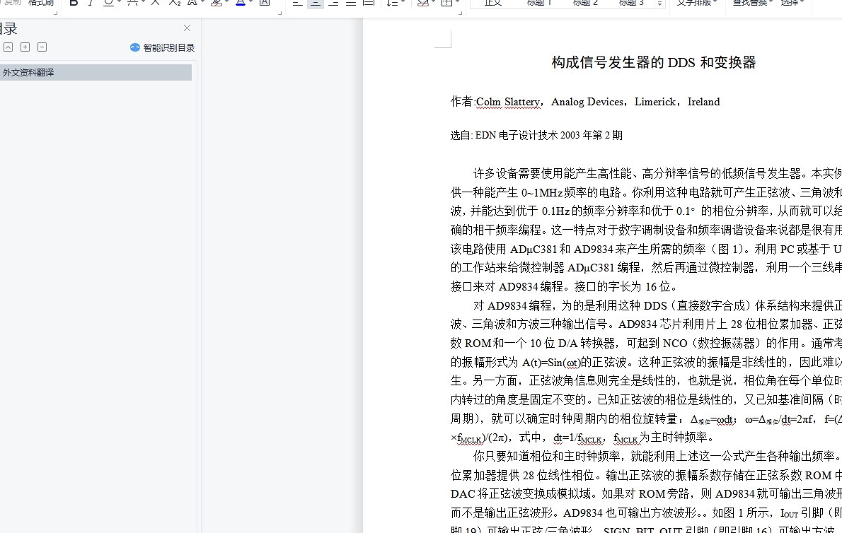 正弦信号发生器的设计 毕业论文+外文翻译及原文
