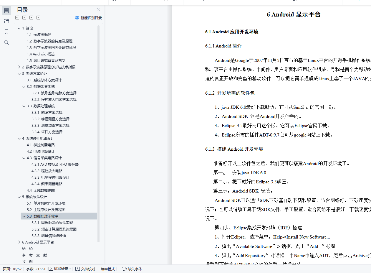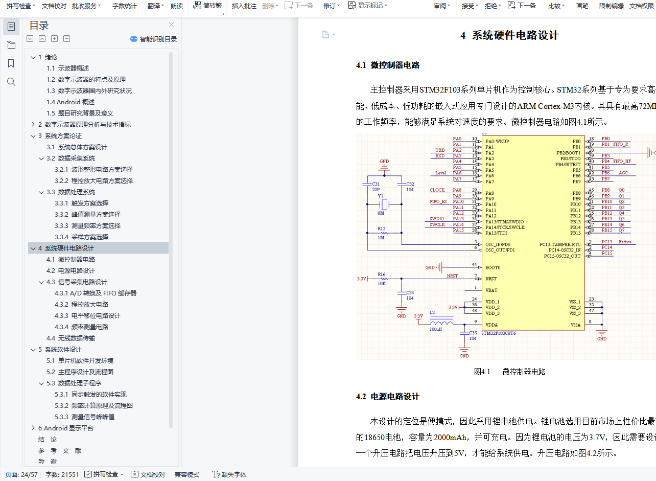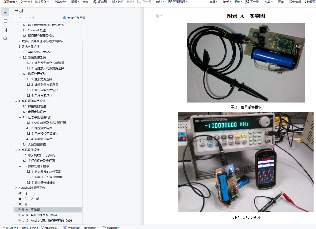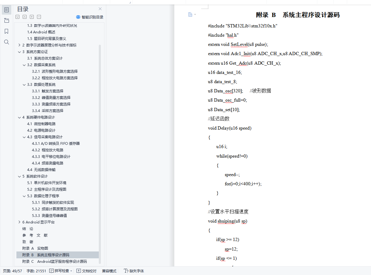 基于STM32单片机和Android的便携式数字示波器设计 毕业论文+电路原理图+Android、STM32源代码