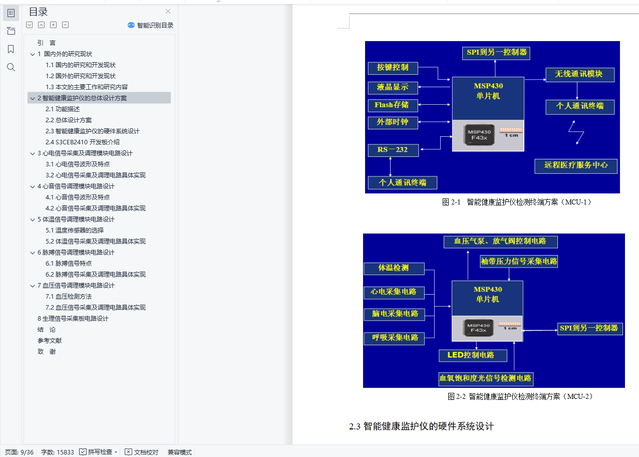 基于MSP30单片机的便携式智能健康监护仪设计 毕业论文