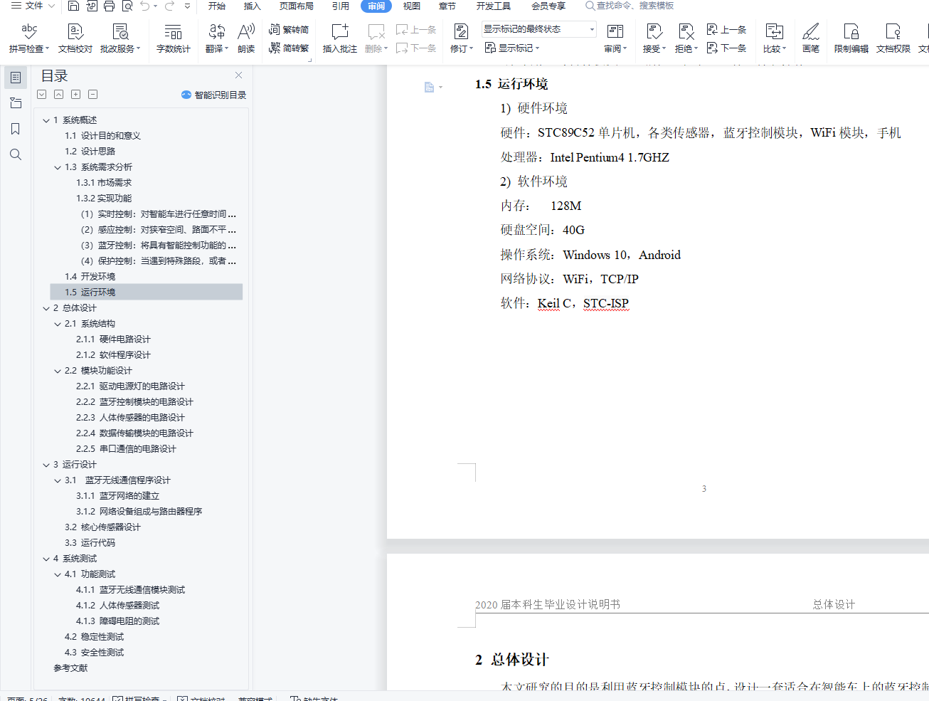 摘 要科技的高速发展从根本上改变了我们的生产方式和生活方式,从工业自动化领域到与人们日常生活相关各个方面,如无人驾驶,智能家居,新能源汽车等。随着人们对新技术的不断研究与探索,必将对人类生活产生巨大影响。智能小车,它融合了传感器、通信、自动控制、人工智能等多个高科技领域技术,具备一定的环境感知能力、路径规划能力和自主运行能力,非常适合在人们无法工作的场所中工作,可以广泛应用于无人驾驶的汽车,自动化生产线,自动化立体仓库等诸多工业领域,也可以作为服务性质的机器人应用都人们的日常生活中。因此,研究设计基于STC89C52单片机控制的智能小车控制系统具有一定的理论意义和实用价值。本次设计的简易电动智能小车,采用STC89C52单片机作为小车的检测和控制核心,充分利用了自动检测技术、单片机最小系统、BT06蓝牙模块、液晶显示模块电路,以及声光信号的控制、电机的驱动电路。通过Keil C和PROTEUS的仿真,实践操作与调试,最终实现小车的蓝牙控制、自动往返与避障等功能。综合运用单片机技术、自动控制理论、检测技术等。使小车能在无人操作情况下,借助传感器识别路面环境,由单片机控制行进,实现初步的智能控制。关键词:人工智能; STC89C52单片机; BT06蓝牙模块; 传感器目 录1系统概述 11.1设计目的和意义 11.2设计思路 21.3系统需求分析 21.3.1市场需求 21.3.2实现功能 21.4开发环境 31.5运行环境 32总体设计 42.1系统结构 42.1.1硬件电路设计 42.1.2软件程序设计 52.2模块功能设计 72.2.1驱动电源灯的电路设计 72.2.2蓝牙控制模块的电路设计 82.2.3人体传感器的电路设计 92.2.4数据传输模块的电路设计 102.2.5串口通信的电路设计 113运行设计 133.1 蓝牙无线通信程序设计 133.1.1蓝牙网络的建立 143.1.2网络设备组成与路由器程序 143.2核心传感器设计 163.3运行代码 184系统测试 224.1功能测试 224.1.1 蓝牙无线通信模块测试 224.1.2人体传感器的测试 224.1.3障碍电阻的测试 224.2稳定性测试 224.3安全性测试 23参考文献 24