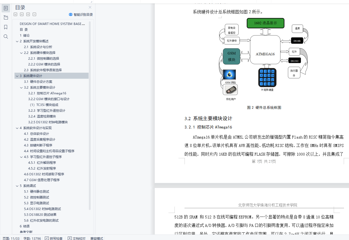 关键词:智能家居;ATmega16;GSM;学习型红外遥控