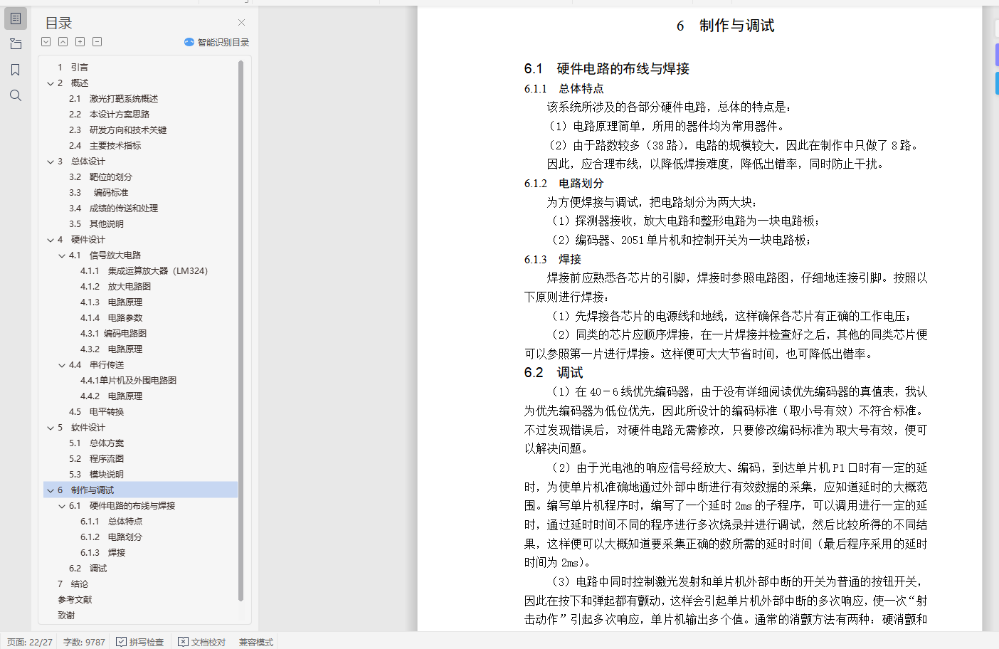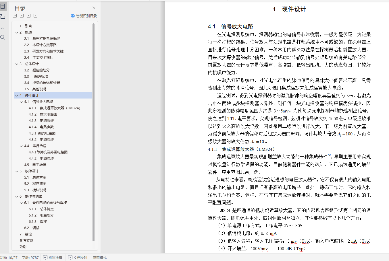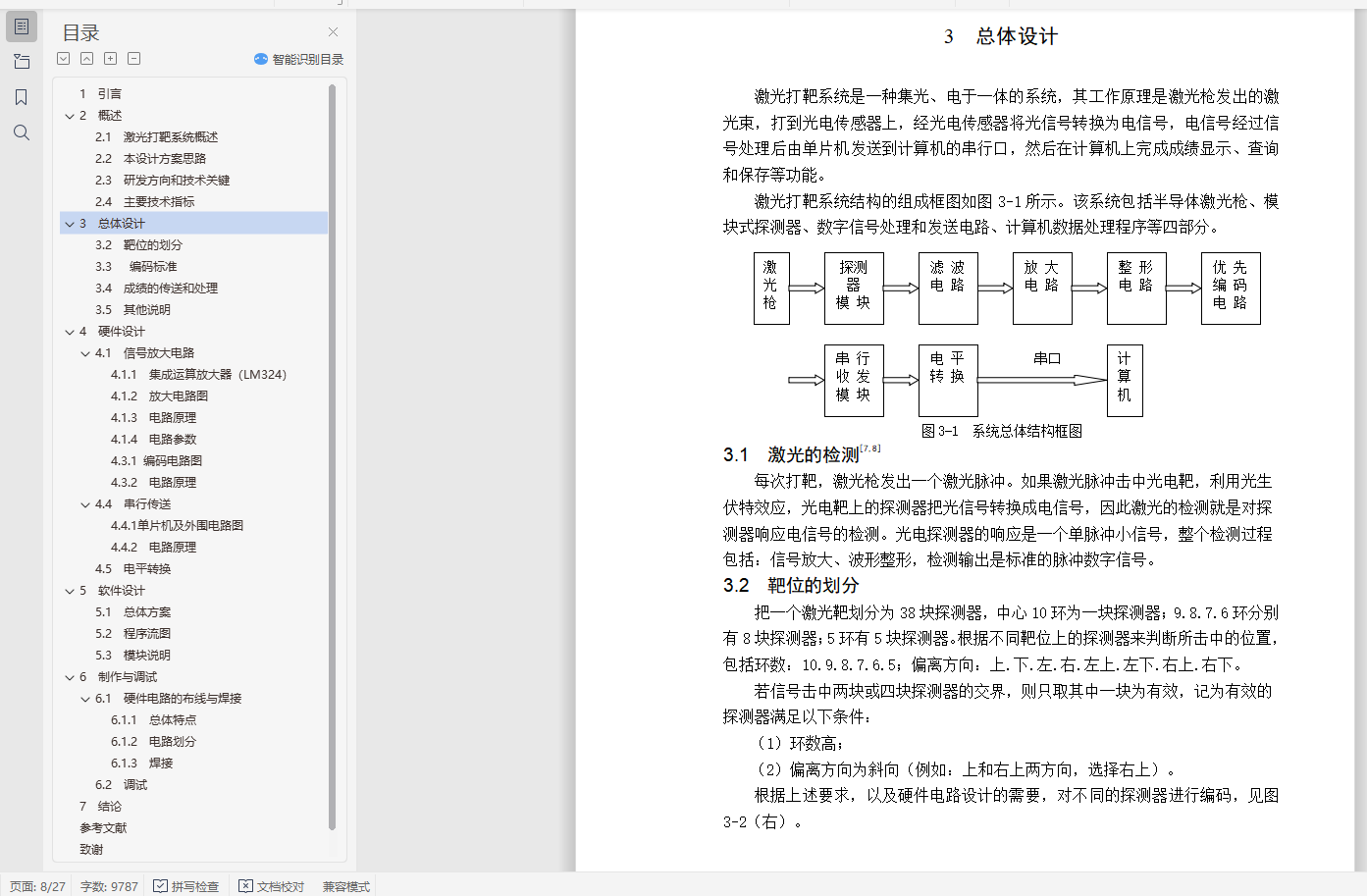 Key words:laser target shooting;signal amplification;signal encode;serial data transmission