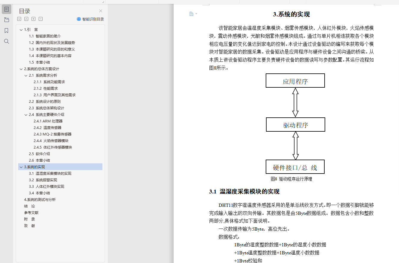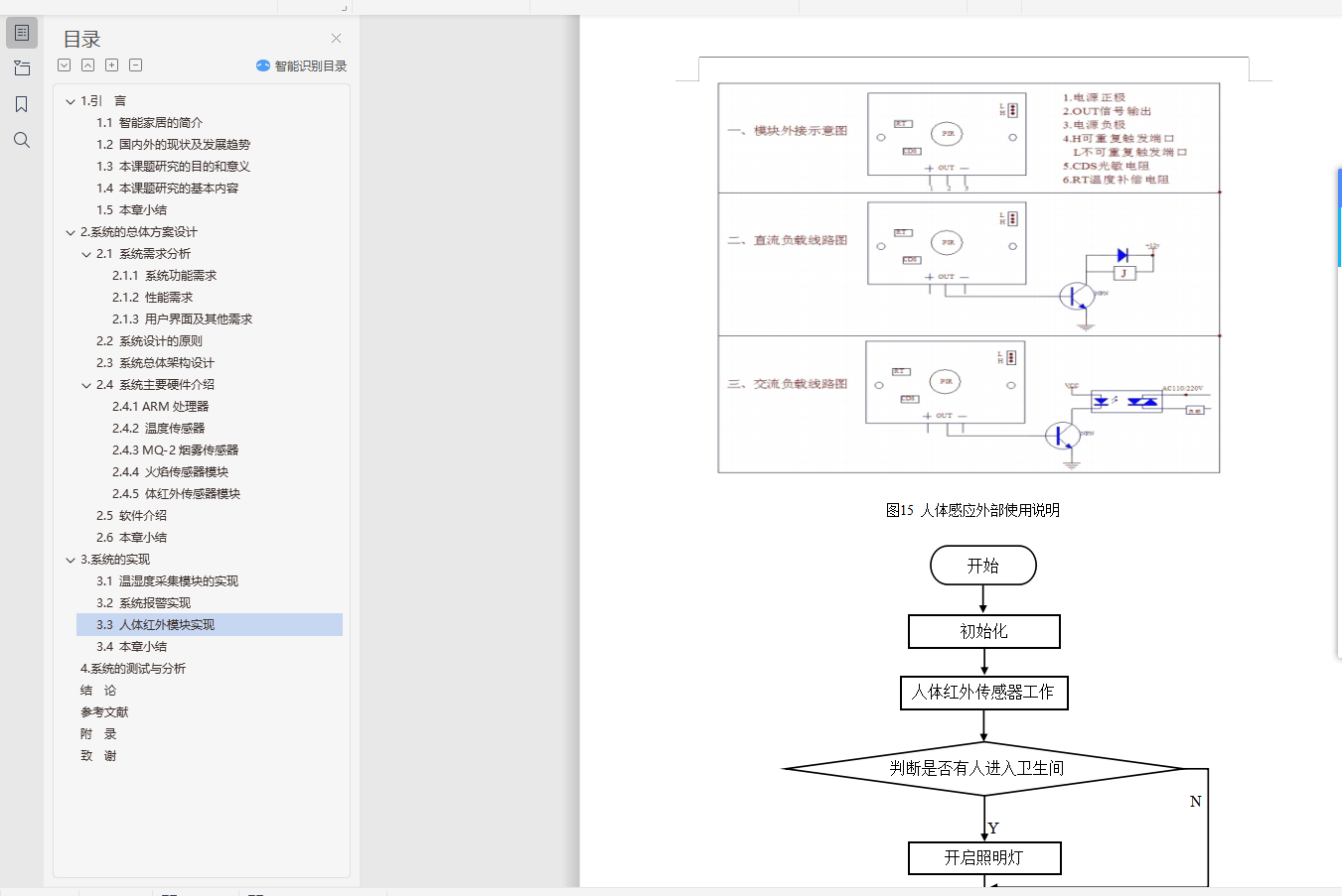 According to the characteristics and the need to achieve the functionality of the smart home system, the basic architecture of the intelligent home control to make a detailed analysis. End-use human infrared sensor (infrared sensor), temperature sensors (temperature transmitter),smoke sensor (MQ-2), relays and other circuit-forming system to achieve real-time monitoring of the house, in order to protect personnel, security objects, easy for users to understand and master houses situation.