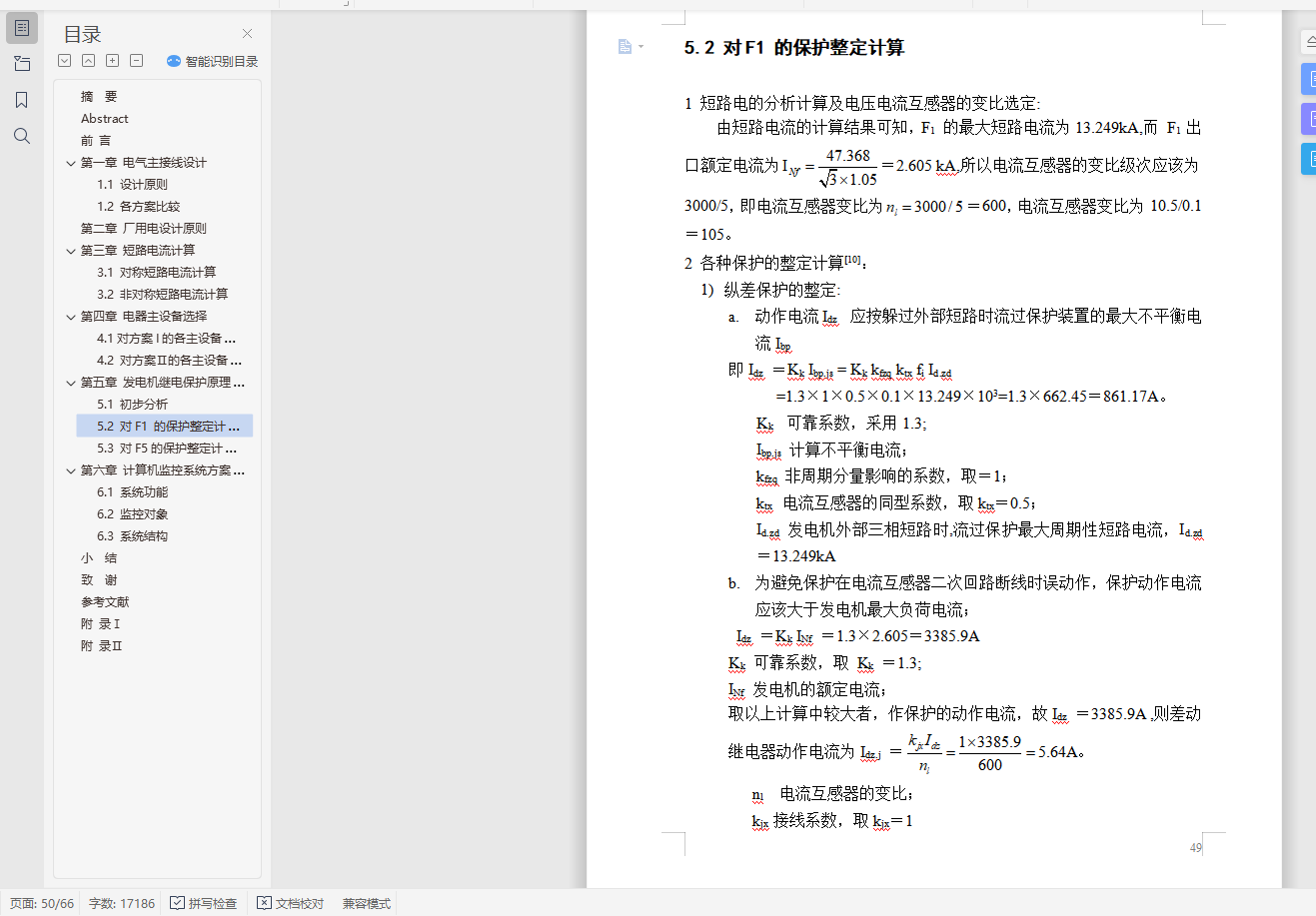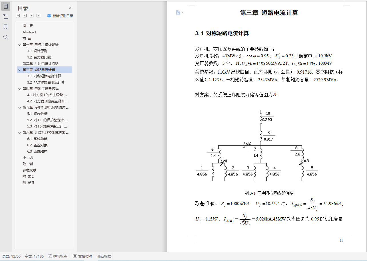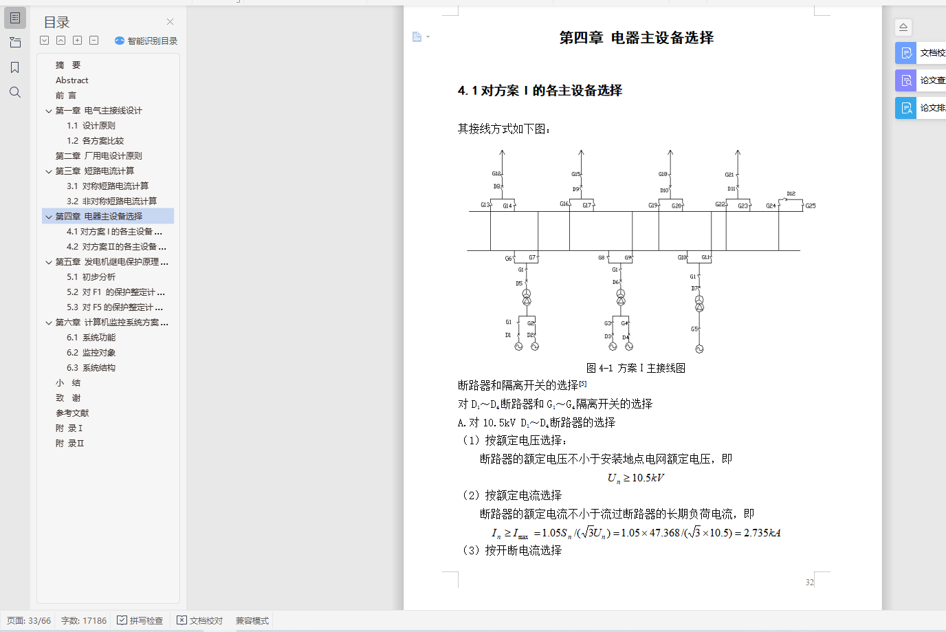 关键词:电气主接线,短路电流计算,设备选型,继电保护