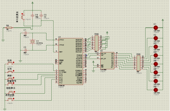 In this paper,Simulation this paper mainly use AT89S52 car taillight controller of intelligent control, with eight car tail lights, LED lights simulation six independent keys corresponding to turn right, turn left, risk warning, night mode, check the switch signal, brake different state, in the actual design analog circuits, I joined the 74 hc595 are needed chip, reduce the use of 51 single-chip microcomputer I / 0 interface to use, in a complex circuit, it is a good way to realize the advantages of a different circuit chip control. In the actual design automobile tail light control circuit simulation, know the LED driver circuit characteristics, put forward the corresponding solution, the reliability design. Simulation in the design automobile tail light control circuit, can be a very good combination of we learned in the course of function and use of 51 single-chip microcomputer and the C language programming, analog electronic circuit, and digital circuit basis, in practice, there are many ways of design automobile tail light control, in the analog circuit design, I am using AT89S52 as the core to control circuit design of the circuit simulation function, the whole circuit is simple and intuitive, and convenient, and easy to operate, 51 single-chip microcomputer can wipe again and again, the advantages of reliable performance.