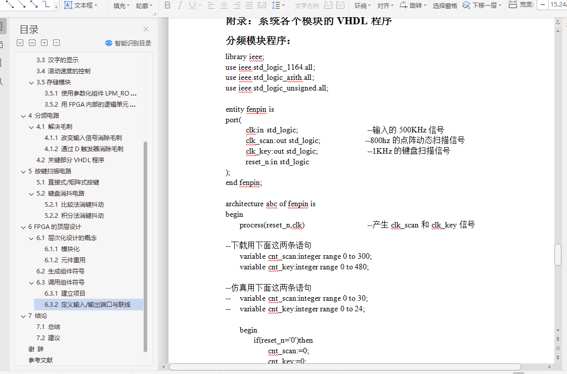 4.2 关键部分VHDL程序 14