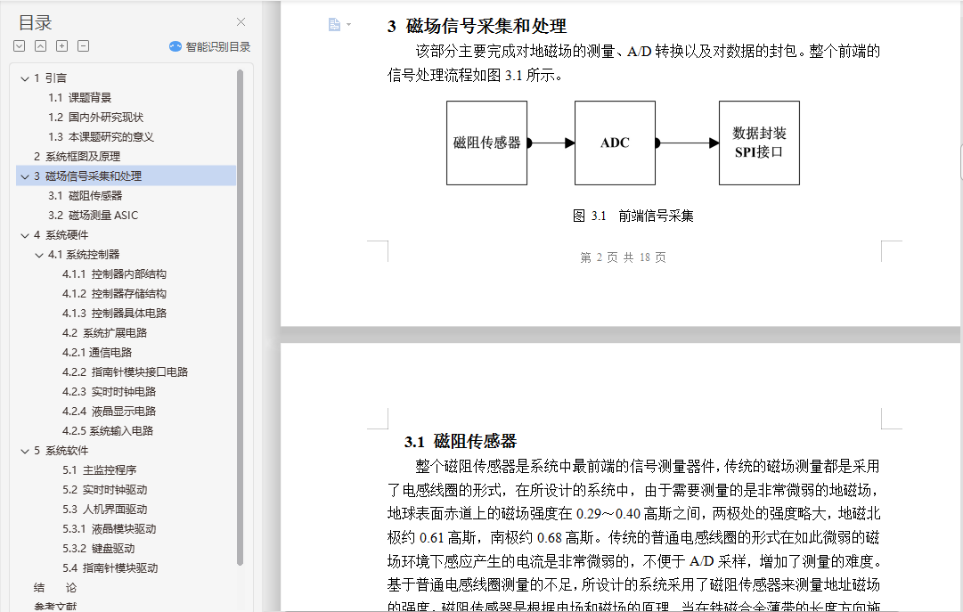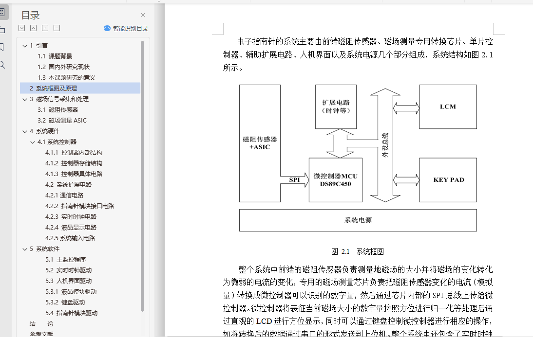早期的指南针采用了磁化指针和方位盘的组合方式,整个指南针从便携性、指示灵敏度上都有一定不足。本系统采用专用的磁场传感器结合高速微控制器(MCU)的电子指南针能有效解决这些问题。