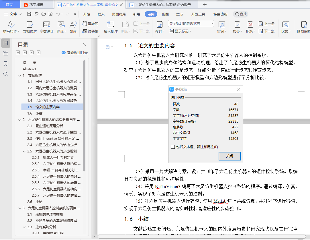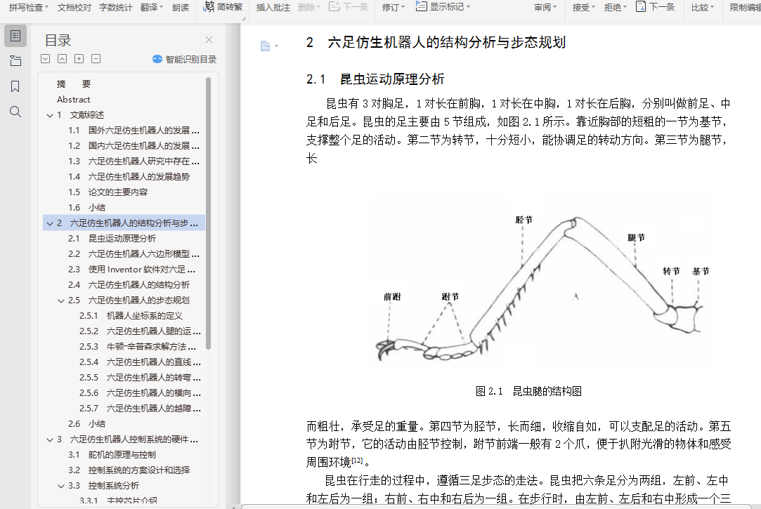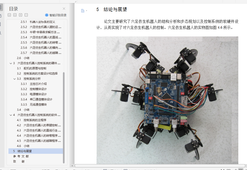 (1)论文分析了六足仿生机器人的国内外研究历史和现状,给出了论文的主要研究内容。