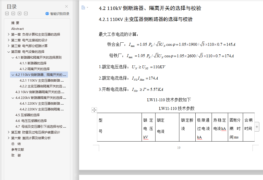4.2 110kV侧断路器、隔离开关的选择与校验 19