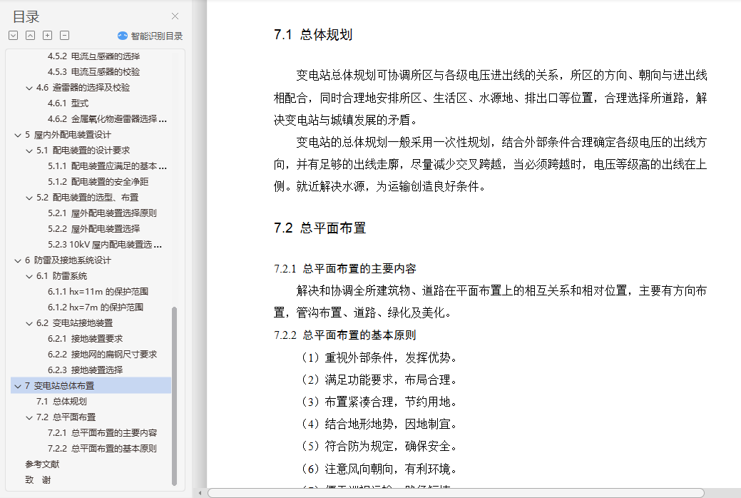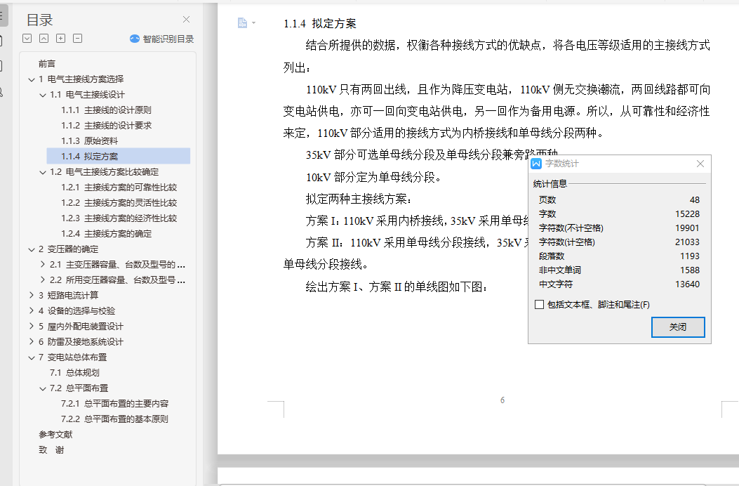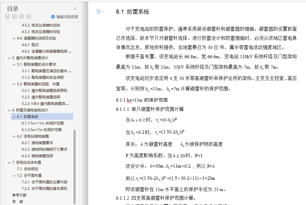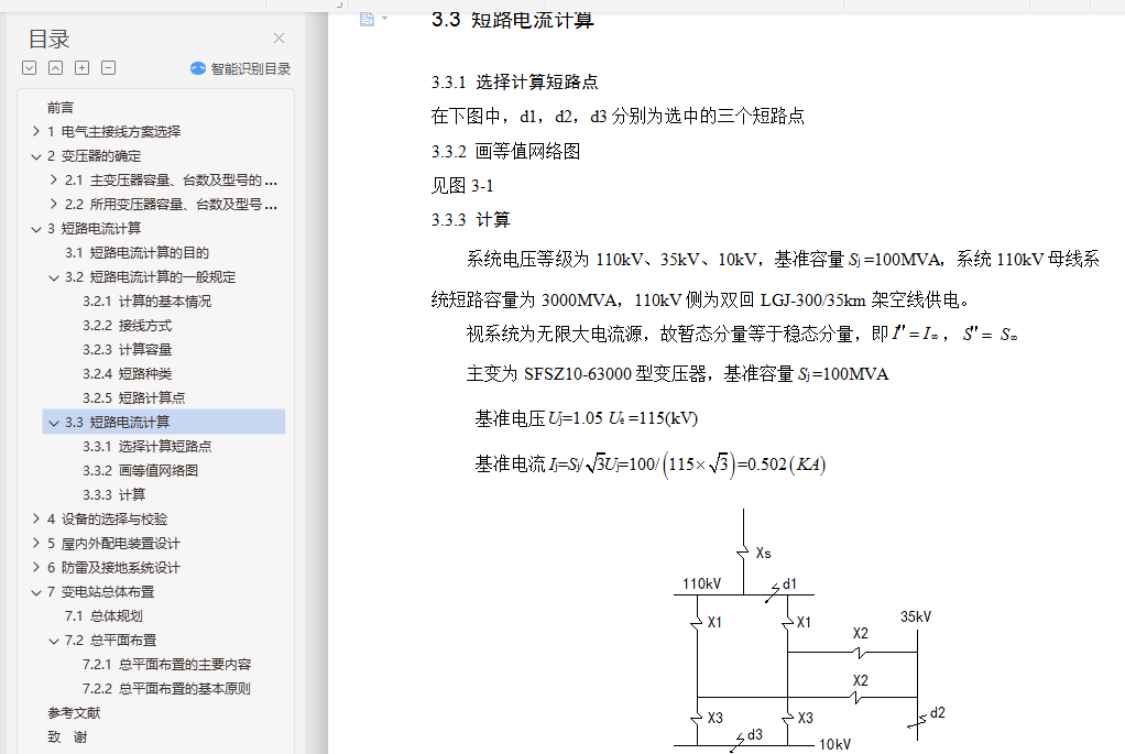 Abstract:A substation is a power facility in a power system that converts voltage, receives and distributes electric energy, controls the flow direction of power energy and adjusts voltage. It connects the grid of voltage at all levels through its transformer. directly affect the safety and economic operation of the whole power system. The electrical main wiring of substation is an important part of power system wiring, and the selection of electrical main wiring is directly related to the selection of all kinds of electrical equipment in the whole station, the arrangement of distribution equipment and so on, which is the decisive factor of the investment size of the electrical part of substation. Design for a suburban 110 kv substation a preliminary design, from the main wiring, short-circuit current calculation, the main The selection of electrical equipment and other aspects of substation design are described, and the electrical main wiring diagram and layout diagram are drawn. There are two main transformers, the main wiring in the station is divided into 110 kV、35kV and 10 kV three voltage levels. The design and selection of the main electrical wiring, the calculation of short circuit current, the selection and verification of the main electrical equipment (including circuit breakers, isolating switches, transformers, arresters, etc.), the design of distribution devices for each voltage grade, the design of grounding system for lightning protection and the overall layout of substations are carried out. The content of this design conforms to the relevant national economic and technological policies, and all the equipment selected is a new type of production recommended by the state products, advanced technology, reliable operation and reasonable economy.