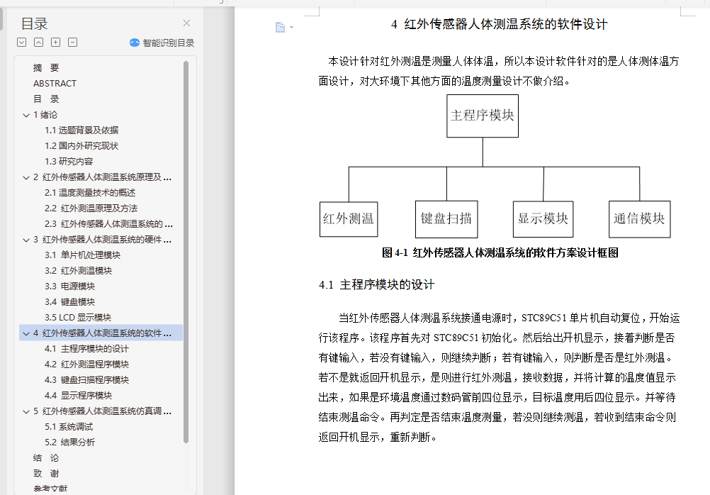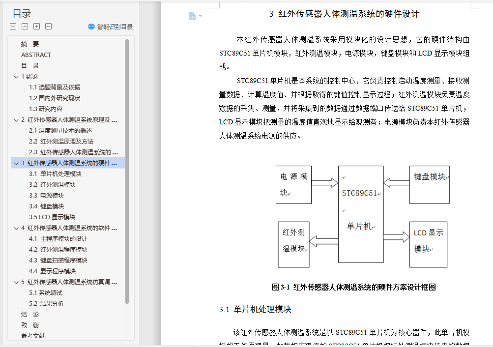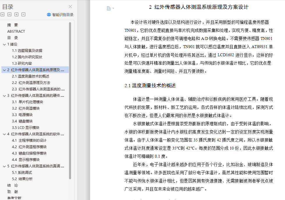 关键词:51单片机;红外传感器;人体测温系统;液晶显示屏