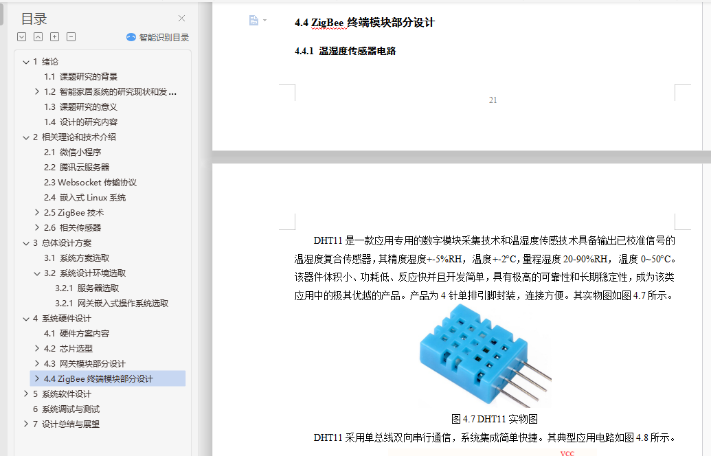 (4)智能设备终端:该部分主要由传感器和ZigBee通信模块组成,是整个系统的数据来源,也是智能家居中最重要的、与用户体验最接近的一部分。
