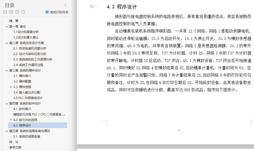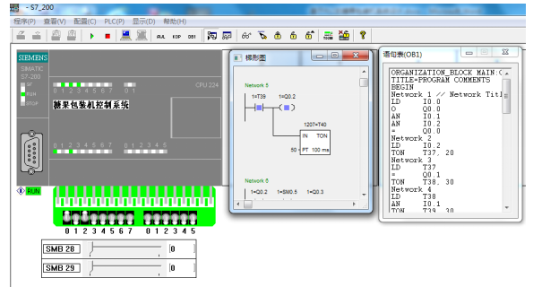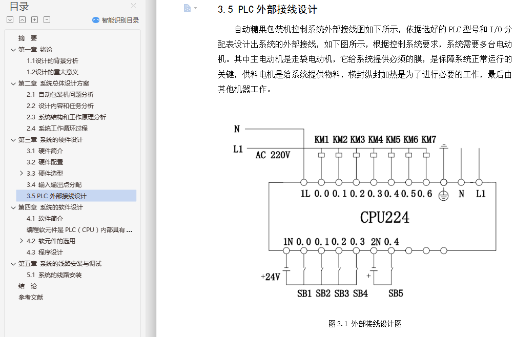现代社会对物品的包装要求越来越高,糖果也不例外,为使包装出的糖果整齐美观并且具有良好的包装质量,要求包装机具有精确的动作、定位精度及较高的生产率和一定的柔性,因此对包装机的控制要求越来越高,传统的继电器已经不能满足现代糖果生产的要求了,所以高效、经济且具有一定柔性的新型包装机是市场迫切需要的。本文着重介绍了一种基于PLC的自动袋成型糖果包装机,对控制系统中的硬件和软件进行了详细的介绍,该糖果包装机是采用西门子ST-200型编程器,本文主要内容为介绍研制自动包装机的意义、国内外的研究现状以及以前的糖果包装存在的问题。设计PLC控制系统的硬件,画出外部接线分配输入输出点,根据输入输出点选择PLC型号;设计PLC控制系统的软件,编写梯形程序图,并且进行仿真调试。