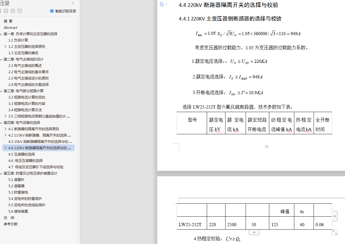 4.4.1 220KV主变压器侧断路器的选择与校验 21