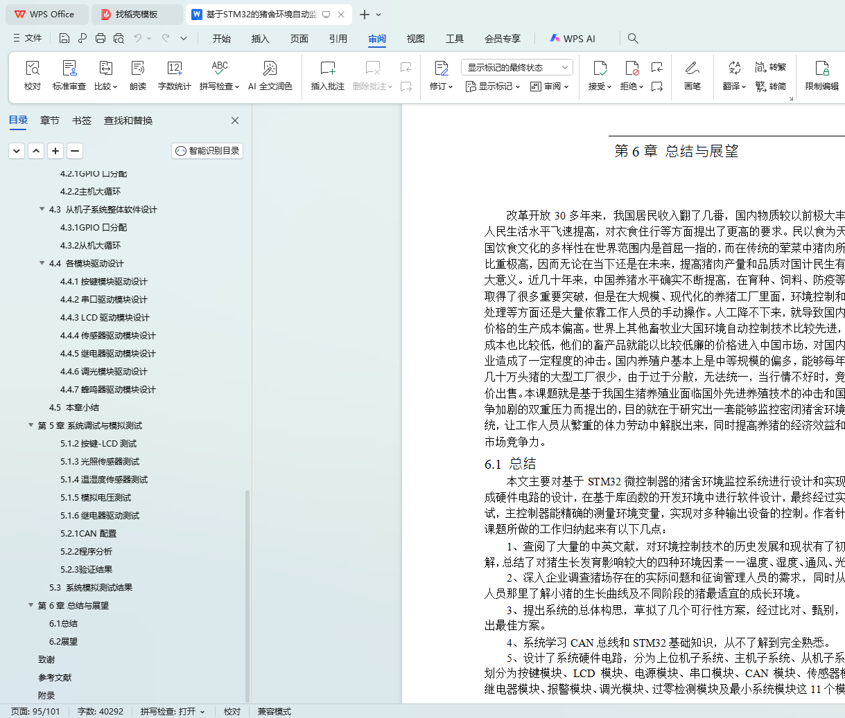 本文将现代控制理论、传感器技术、微电子技术等综合运用,研究出了一套 用于生猪规模化养殖的环境监控系统。该系统通过传感器采集各环境因子的实时 值,将其送入到控制器 STM32,经过与预设值分析比对后,遵循事先制定的控 制策略,发出控制信号,驱动相关的执行设备,从而达到控制参数的目的,营造 出一个舒适的猪舍环境。此外,这些值通过 CAN 总线上传到办公室端的主机中, 方便管理人员通过人机交互界面实时查看这些量,并能根据需要随时调整各参数 限值,以适应不同阶段的猪对环境的要求。