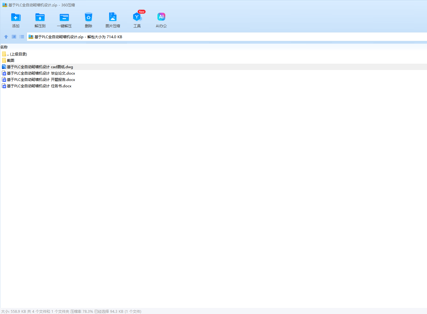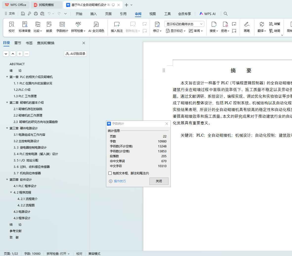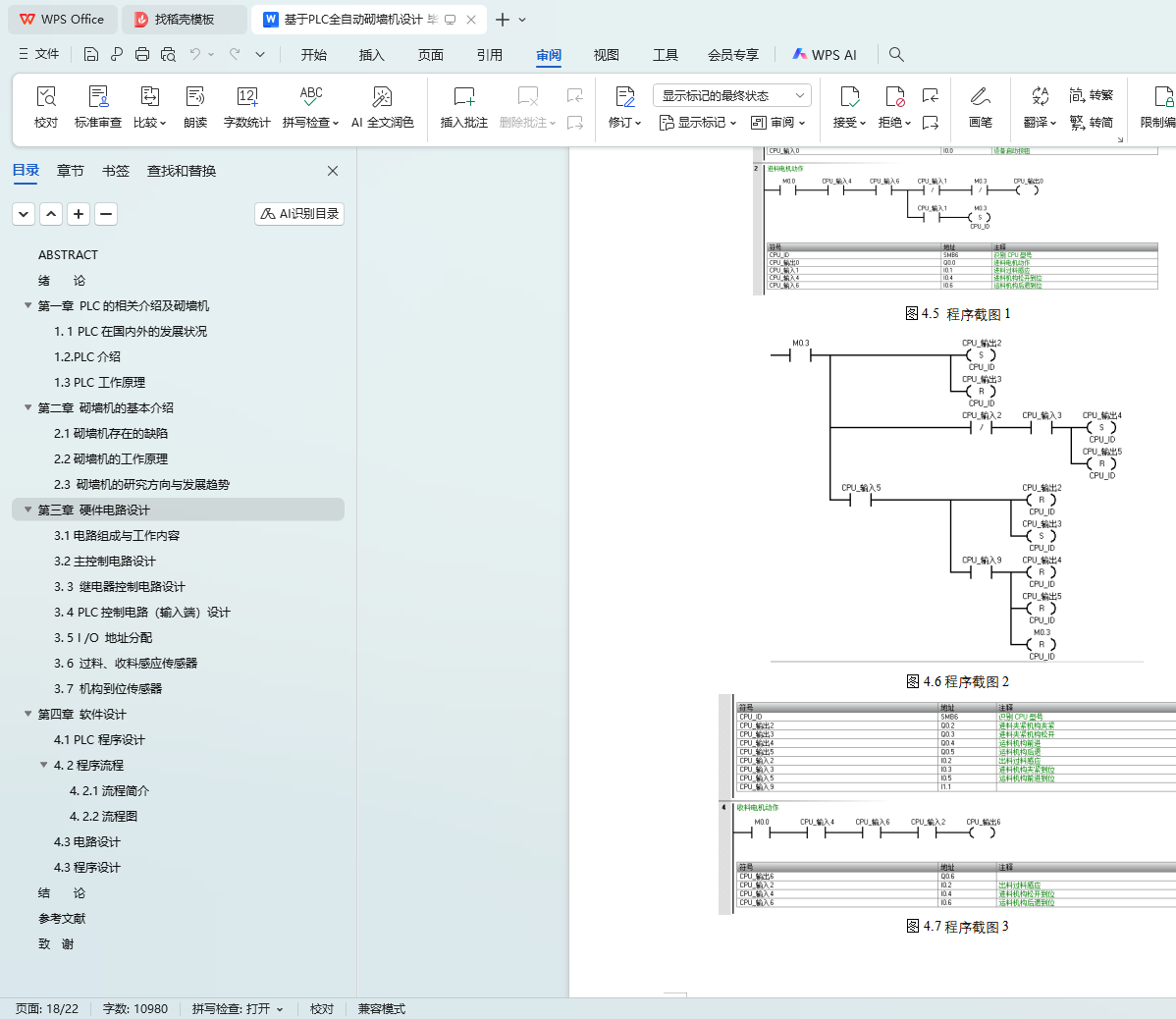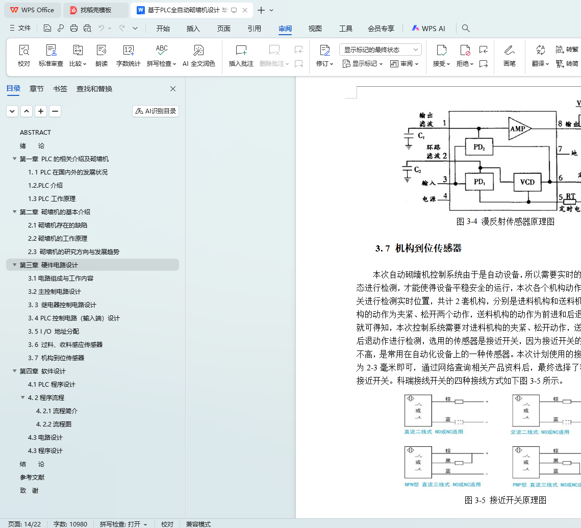 本文旨在设计一种基于PLC(可编程逻辑控制器)的全自动砌墙机,以解决建筑行业在砌墙过程中面临的效率低下、施工质量不稳定以及劳动强度大等问题。通过文献调研、系统设计、编程实现、调试优化和实验验证等步骤,本文完成了砌墙机的整体设计,包括PLC控制系统、机械结构以及自动化程序的设计。实验结果表明,所设计的全自动砌墙机具有较高的稳定性和自动化程度,能够显著提高砌墙效率和施工质量。本文的研究成果对于推动建筑行业的自动化和智能化发展具有重要意义。