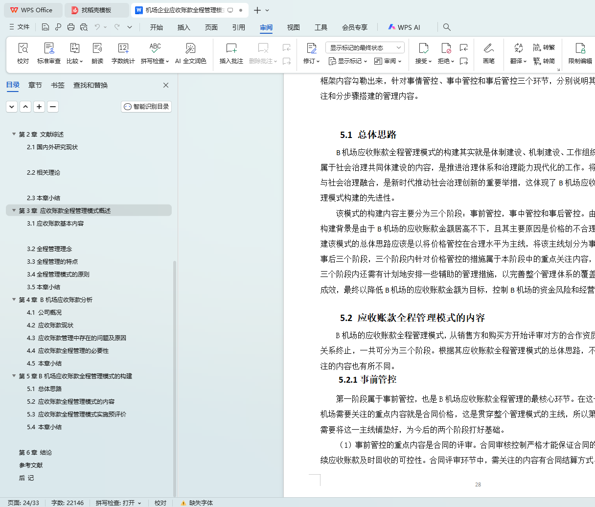 本文从B机场的业务特点和管理问题入手,对B机场应收账款管理现状进行了分析,提出了B机场运用应收账款全程管理理念的必要性,并结合PDCA循环管理方法,初步构建了适用于B机场的应收账款全程管理模式。其二,本文明确了该管理模式下的主要管控内容是对合同价格的管理,对合同价格的管理最主要的是要在事前管控中将合同价格控制在合理水平,并需在事中管控和事后管控中辅助一些对催收程序和考核制度制定的管理手段,以完善整个全程管理模式对B机场的应收账款的管控效果。其三,在管理原则方面,严格计划、业财融合、职责分明、信息共享和客观评价这五大原则是整个全程管理模式都需遵循的方向,企业全体管理层对此需产生共识才能保障应收账款全程管理的推进和落实。