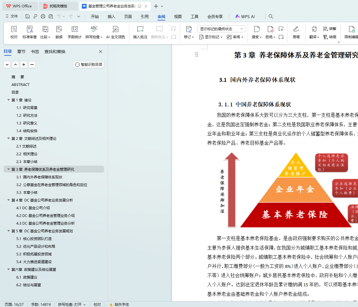 本文第一部分,首先通过分析中外(主要是中国和美国)养老金业务发展趋势,借鉴美国养老保障体系发展之路,总结提出公募基金在服务养老事业发展的重要作用和重大机遇,同时分析公募基金行业养老业务发展情况,明确公司的机遇与挑战。第二部分为本文的核心内容,深入分析公司养老金业务发展的基础、积累和现状,提出公司发展养老金业务的必要性、优势和不足。第三部分,本人会结合第二部分的分析结果,对于公司发展养老金业务提出发展规划和保障举措,同时针对研究发现,向政府有关部门就完善三大支柱建设提出相关政策建议。最后是本文的结论和展望等,对于本文进行一个详细概括和归纳性总结。