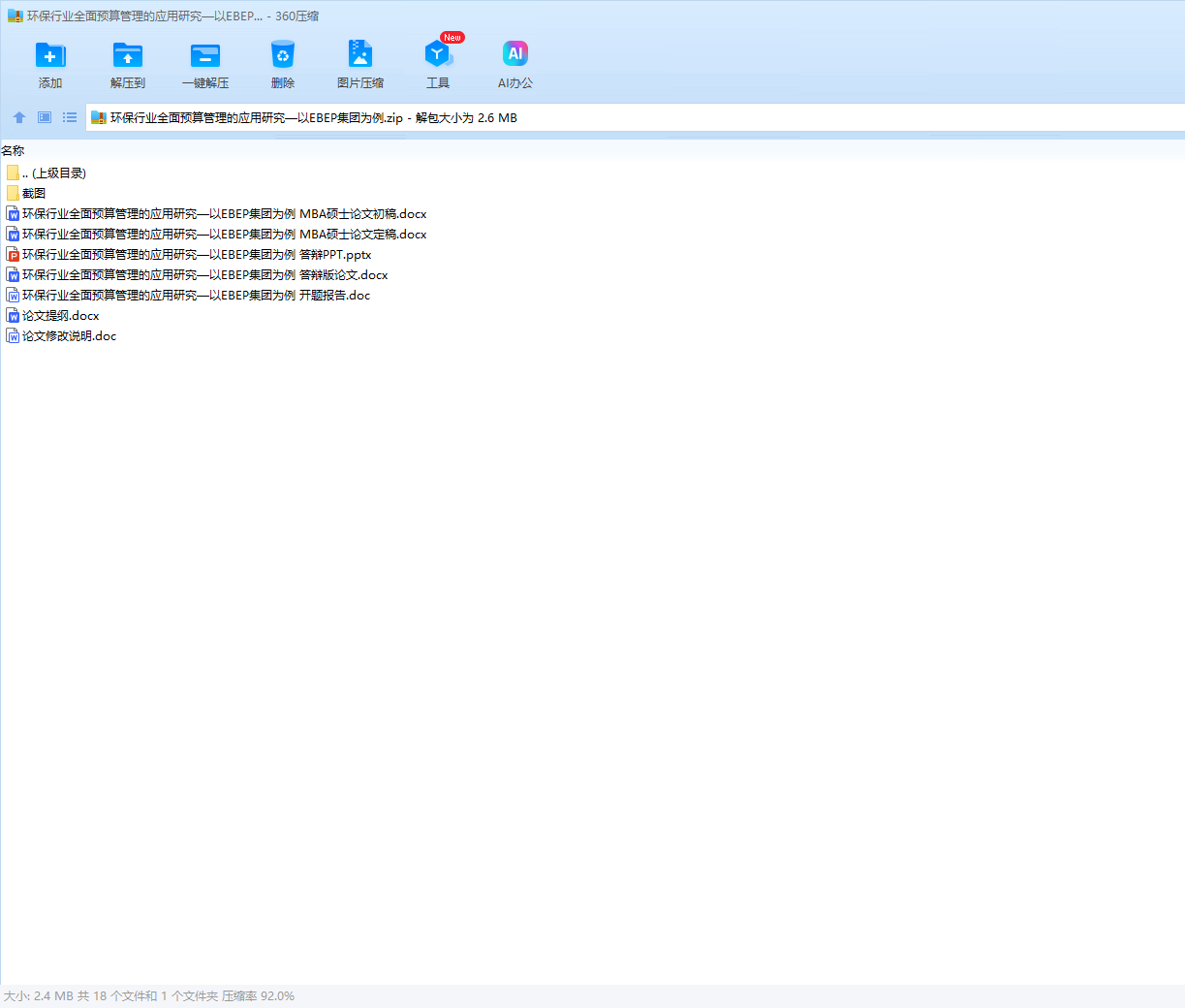 The research in this paper provides practical cases for budget management theory and further expands the theoretical depth. At the same time, the budget management model designed and implemented by the industry benchmark EBEP Group has great promotion significance for the whole environmental protection industry.