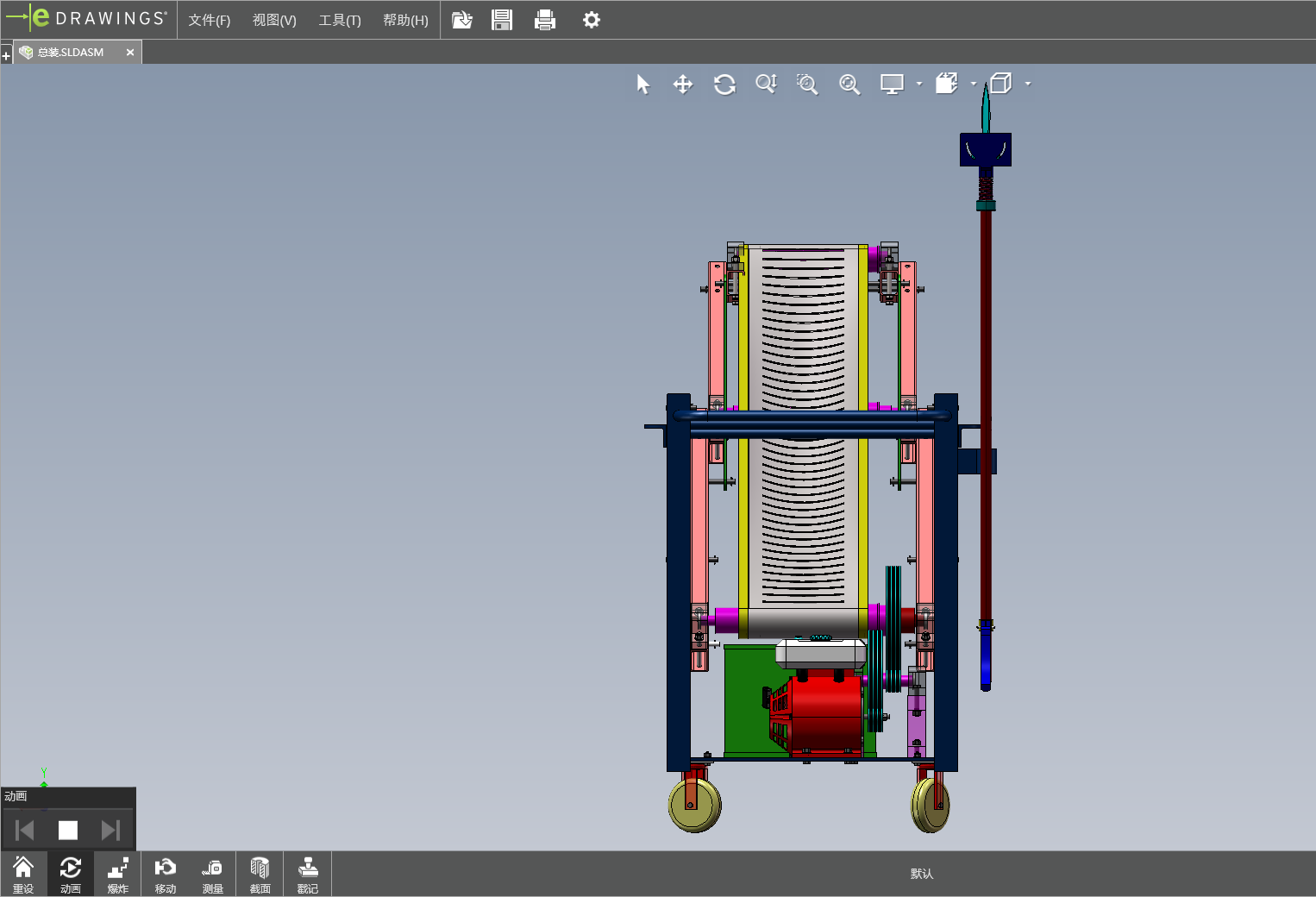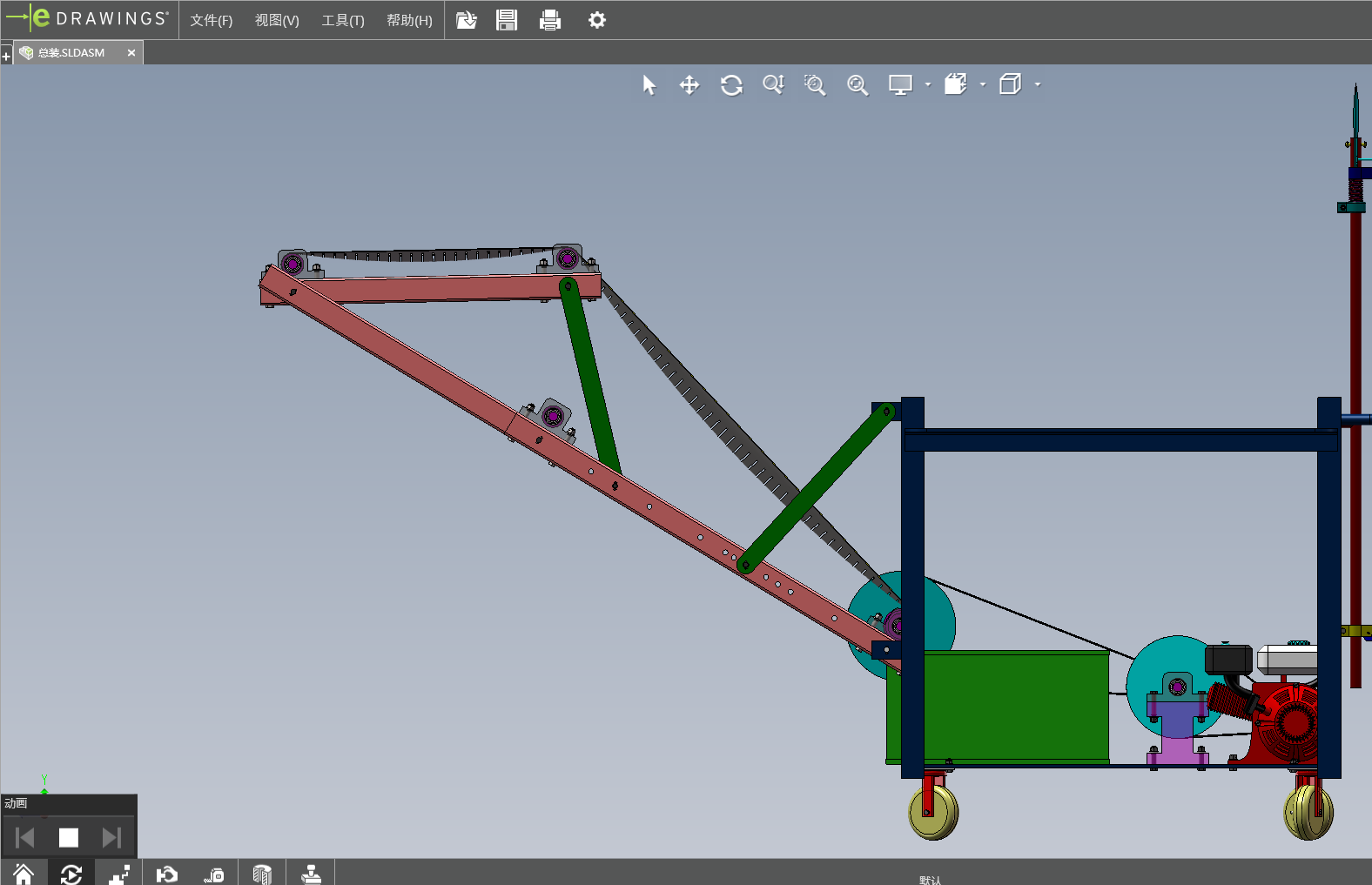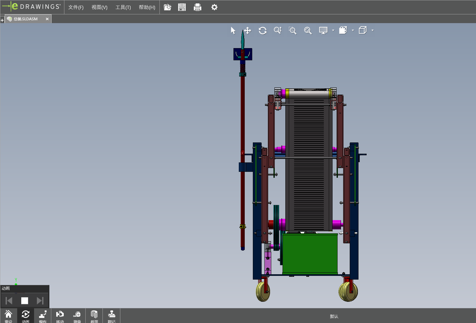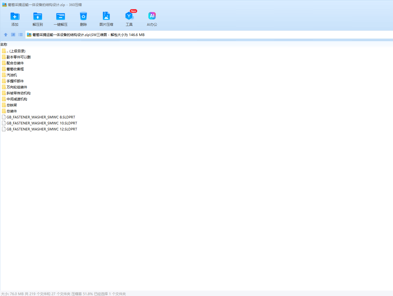 本课题设计的葡萄采摘运输一体设备,手持杆状剪刀作为采摘工具,手握端采用自行车手捏闸形式进行操控,工作端则设计有路径控制器来控制剪刀的开启与闭合,同时利用弹簧实现剪刀的自动闭合。此外,设备还配备了可折叠的葡萄输送机构,在闲置时可以折叠起来,节省空间。本文详细阐述了设备的总机架机构的结构形式和结构尺寸,动力传动系统的选择与设计,以及主要零部件的结构尺寸和选型。最后,对设备进行了强度校核和三维造型与装配,为鲜食葡萄采摘提供了一种全新的机械化解决方案。