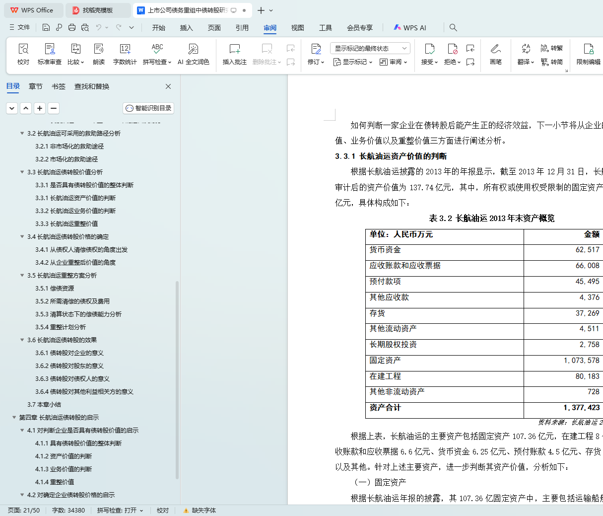 一、在债转股实施前,如何判断上市公司具有债转股的实施条件:本文基于对长航油运债务重组前的经营情况及财务状况进行分析,研究长航油运是否具有债转股的条件。进而推广总结判断上市公司是否具有债转股条件时,需从上市公司是否具有资产价值、业务价值以及重整价值三大方面进行分析考虑。