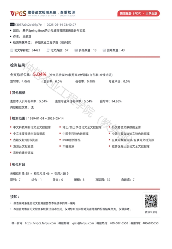 毕业论文(设计)查重报告简洁版