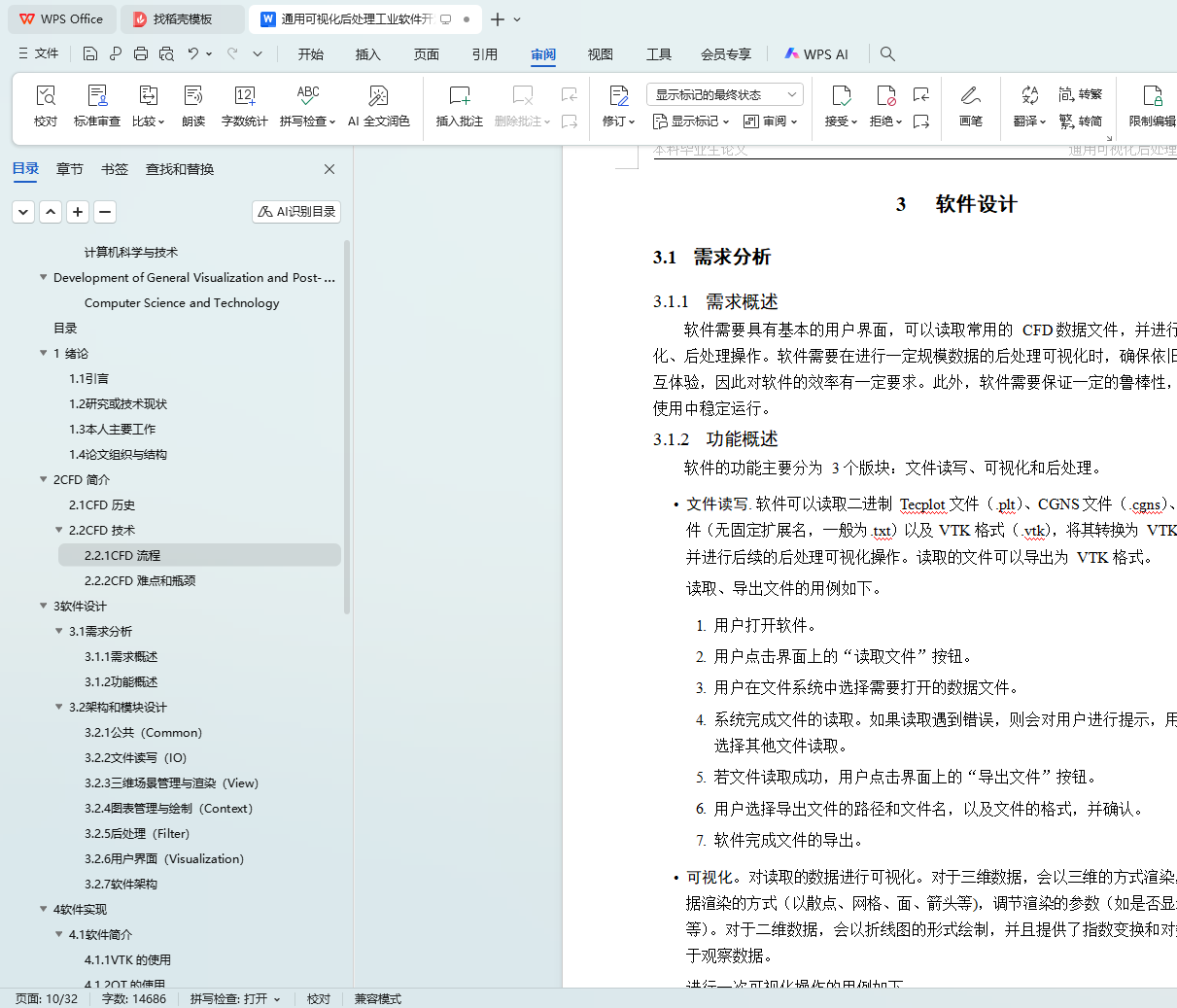 [摘要] 工业软件涵盖工程、计算机、物理与数学研究,是重要的生产、研究工具。而这项在各行各业都有广泛应用的工具,却大部分都来自国外,国内所拥有的工业软件大都是内部软件,只能解决 很小范围的问题,不具备通用性。在计算流体力学领域,常用到后处理可视化软件,通过它可以观察流场数据,提取流场的特征用于科研制造。针对这个需求,使用了 VTK、QT 等框架开发了一个具备通用性的后处理可视化软件,其可以完成常用的文件读写以及常用的可视化、后处理操作,可以进行流场 渲染、图表绘制和流场计算。对一定规模数据,使用了并行化、加速数据结构和 LOD 等技术进行优化, 可以较为流畅地处理较大规模的数据。此外,软件提供了接口,并使用 Doxygen 生成了说明文档,能以链接库的形式轻松集成到其他软件当中。软件还使用 QT 框架实现了国际化,使用 cmake 配置实现了跨平台等,这使软件的通用性大大提升,使其足以用于流场的研究。