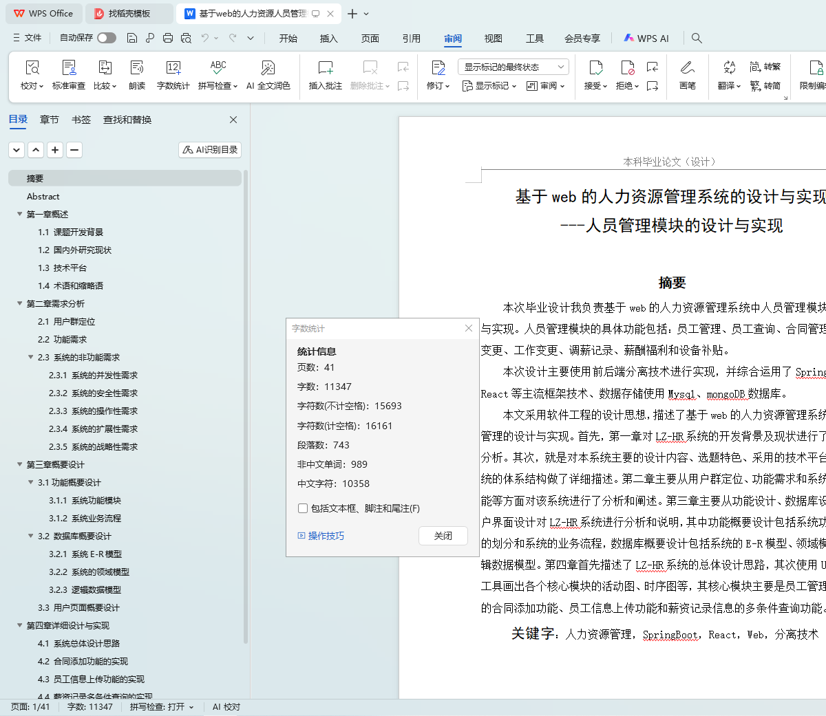 关键字:人力资源管理,SpringBoot,React,Web,分离技术