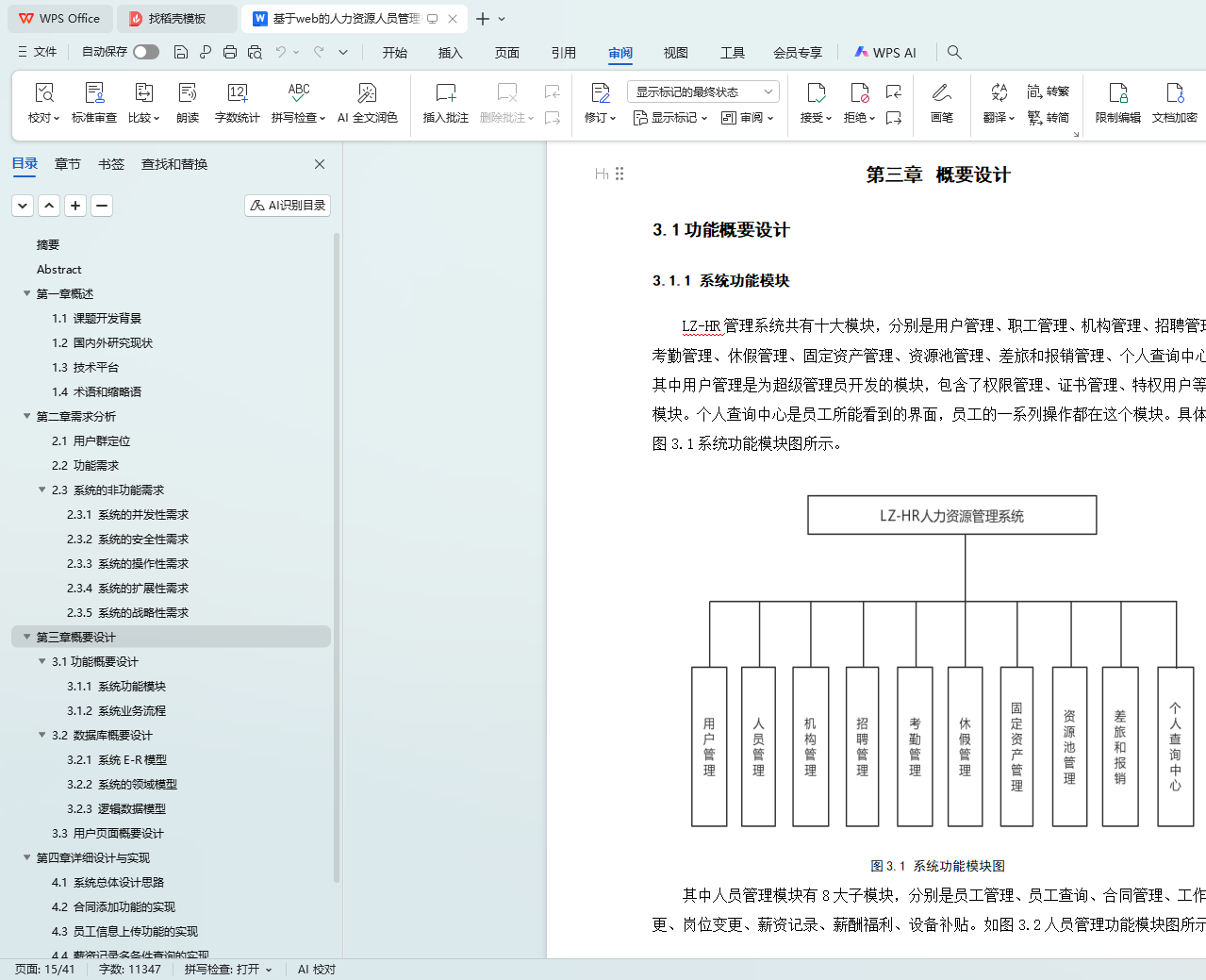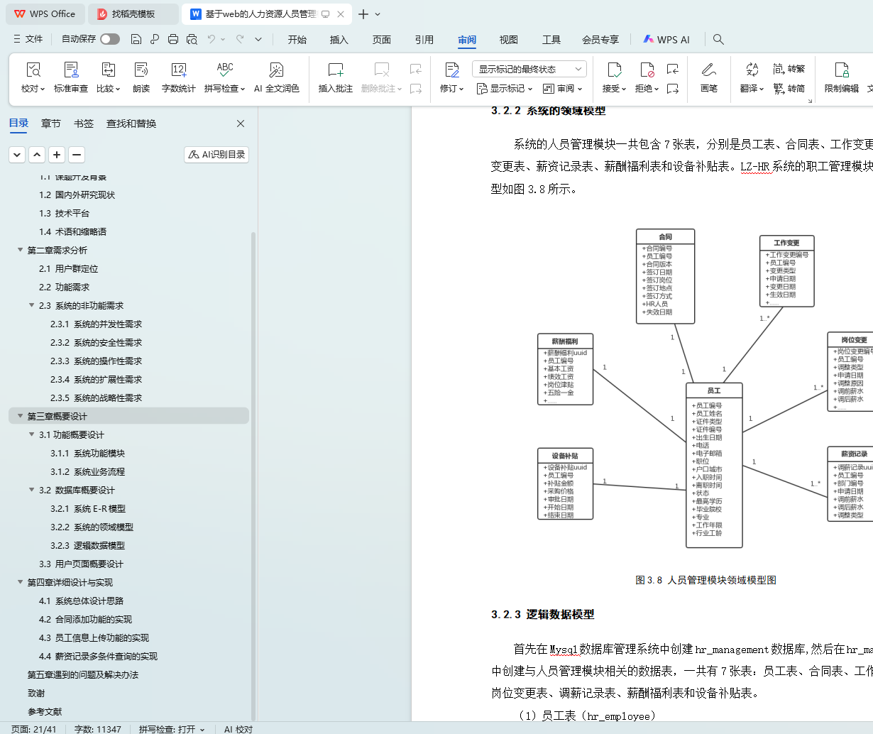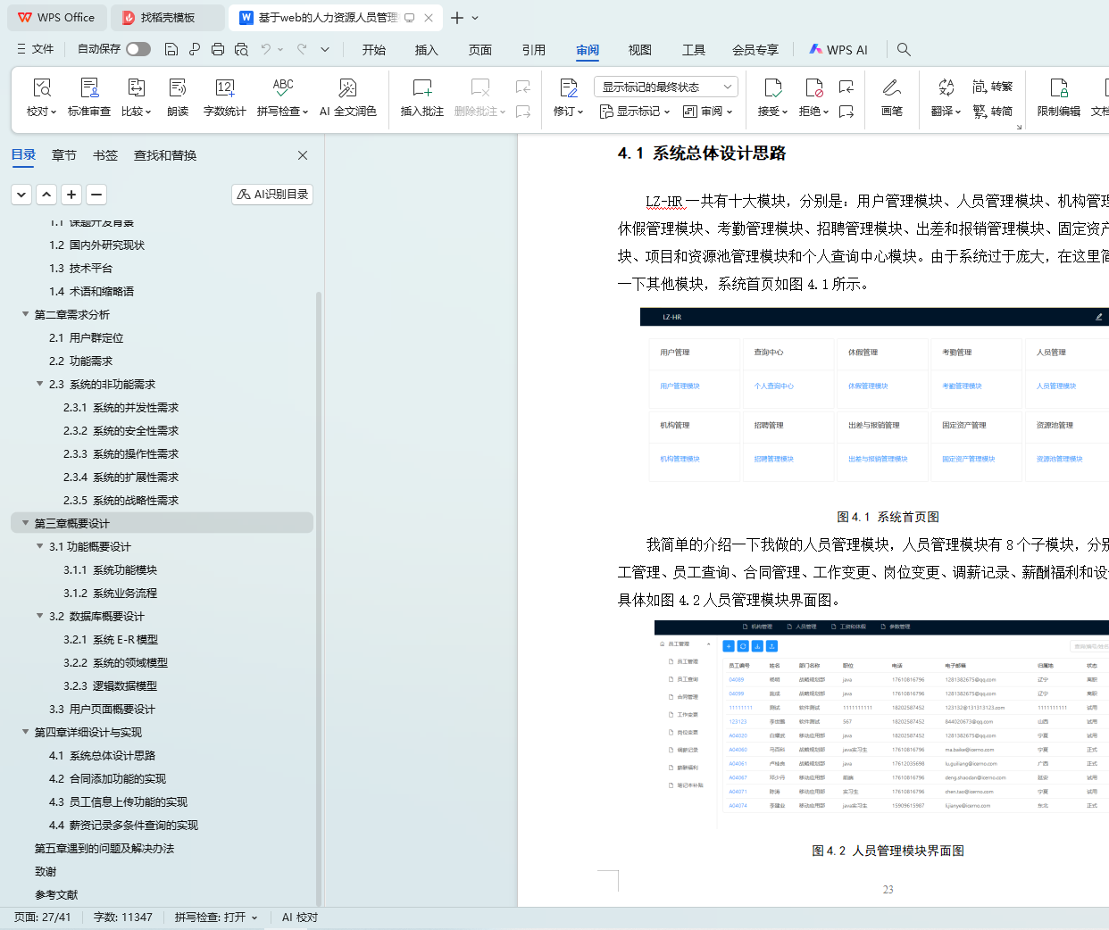 本文采用软件工程的设计思想,描述了基于web的人力资源管理系统中人员管理的设计与实现。首先,第一章对LZ-HR系统的开发背景及现状进行了描述和分析。其次,就是对本系统主要的设计内容、选题特色、采用的技术平台以及系统的体系结构做了详细描述。第二章主要从用户群定位、功能需求和系统的非功能等方面对该系统进行了分析和阐述。第三章主要从功能设计、数据库设计和用户界面设计对LZ-HR系统进行分析和说明,其中功能概要设计包括系统功能模块的划分和系统的业务流程,数据库概要设计包括系统的E-R模型、领域模型和逻辑数据模型。第四章首先描述了LZ-HR系统的总体设计思路,其次使用UML建模工具画出各个核心模块的活动图、时序图等,其核心模块主要是员工管理模块中的合同添加功能、员工信息上传功能和薪资记录信息的多条件查询功能。