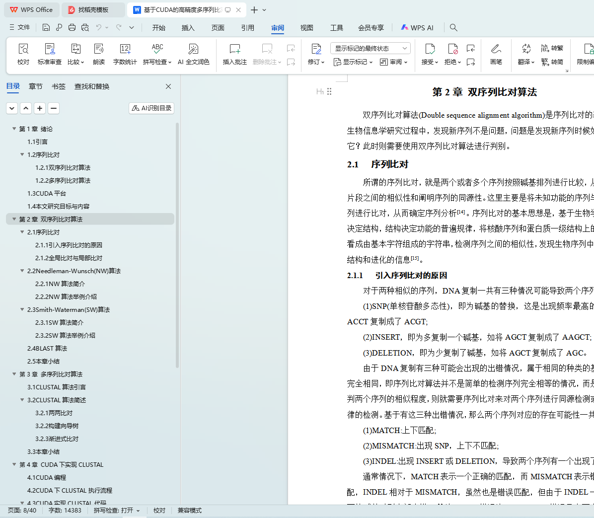 关键词 多序列比对算法;CUDA计算;CLUSTAL;序列比对