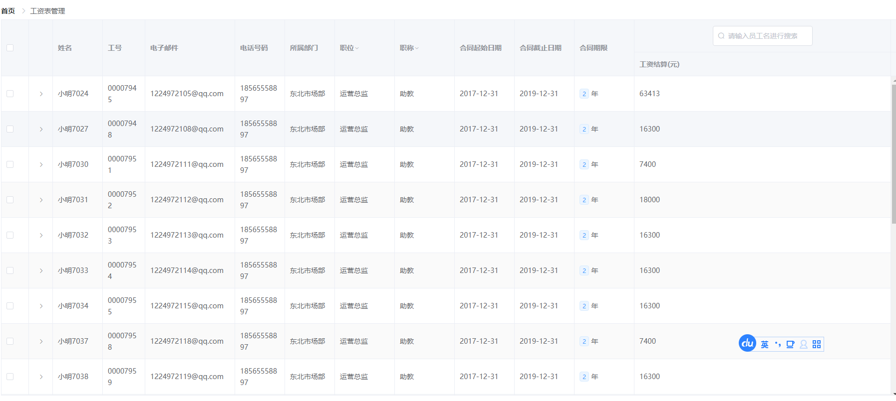 5.2 员工资料…………………………………………………………………………