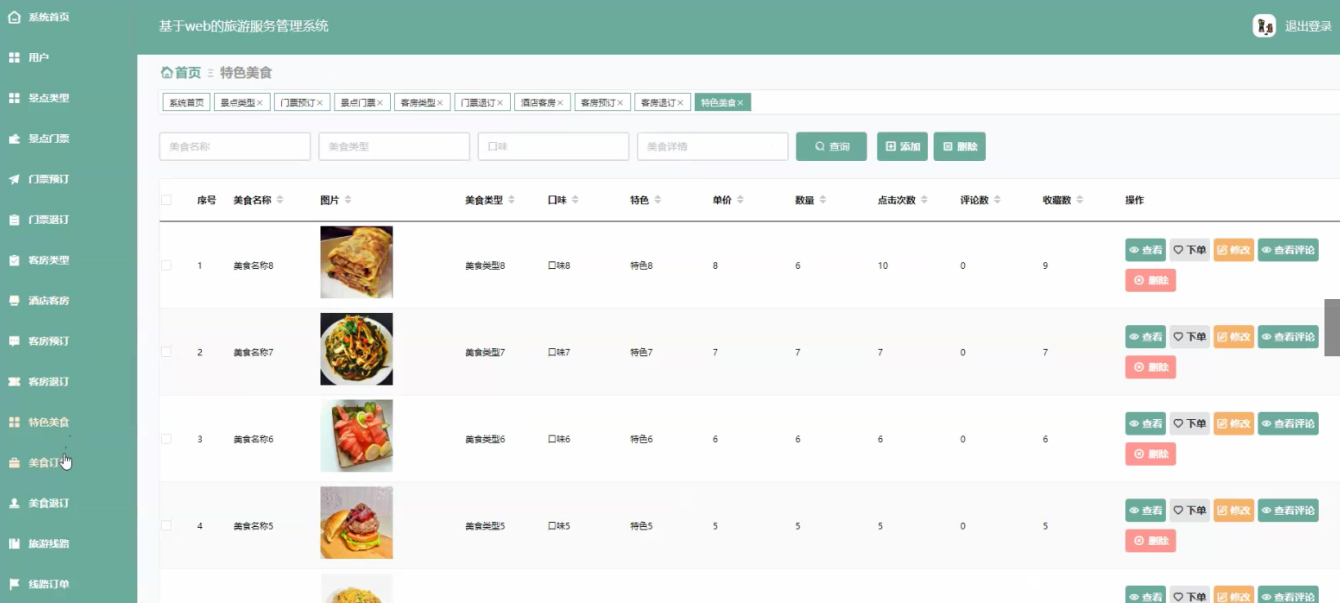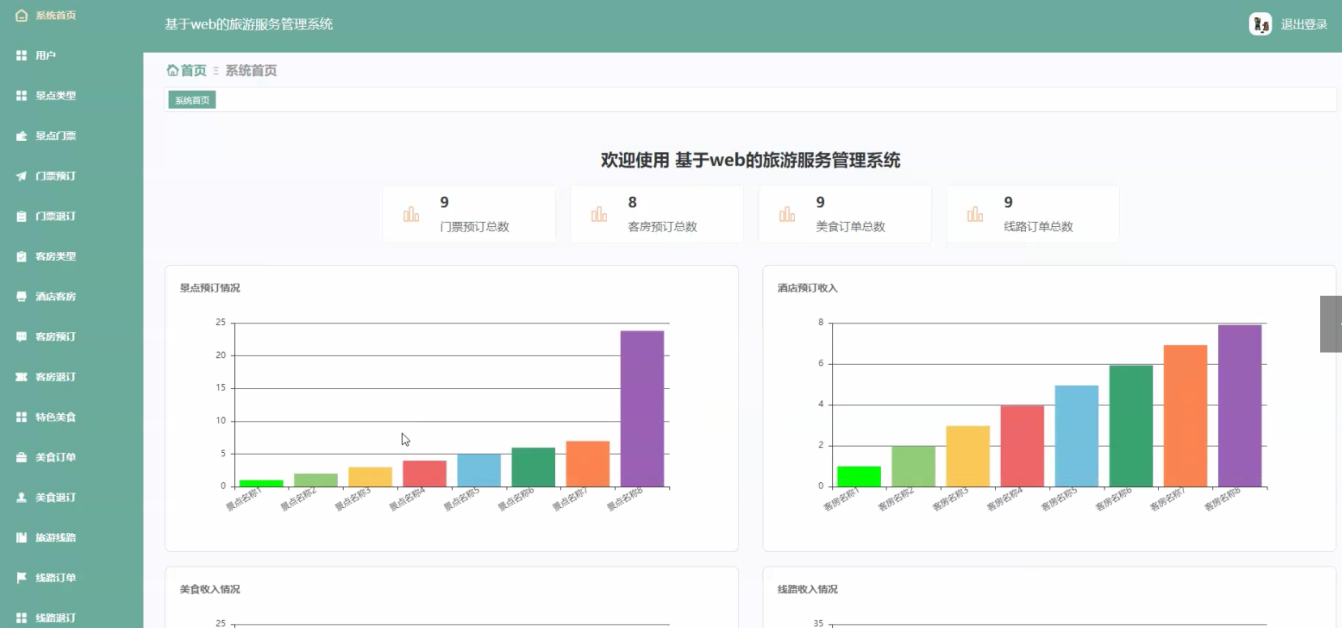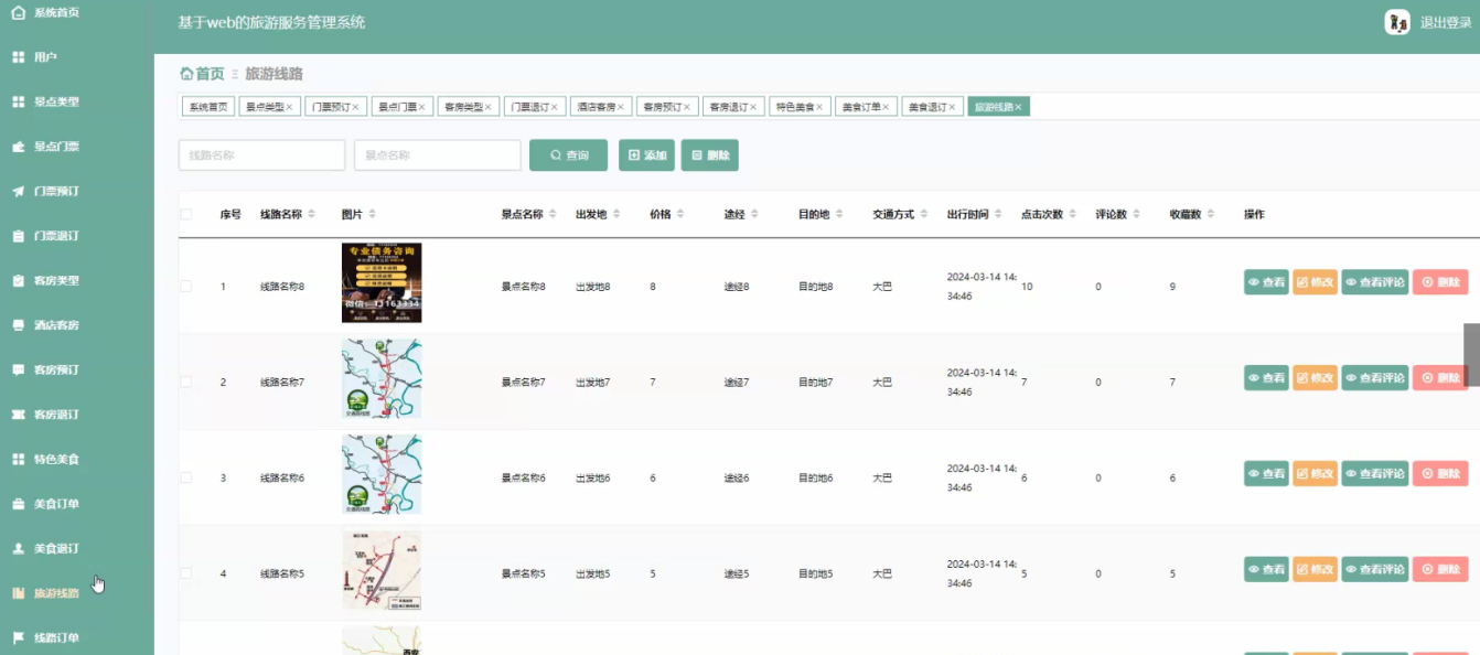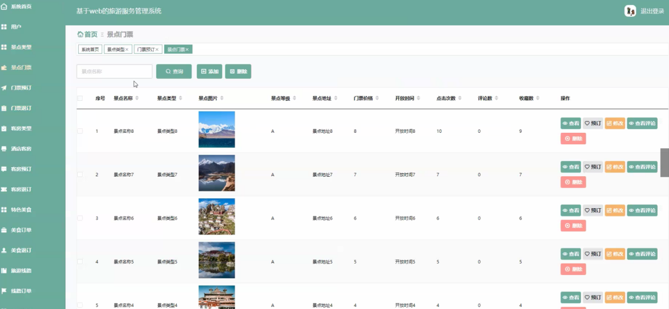 The system utilizes Java language, MySQL database, Spring Boot framework, and the current popular B/S architecture to centralize all aspects of the tourism service management system into the database, in order to meet the needs of users. The system can achieve the design and application of multifunctional modules while ensuring system stability. The system consists of an administrator function module and a user function module. There are strict differences in the admission systems for different roles. The design of each functional module also facilitates future system upgrades and maintenance. The system adopts methods such as software componentization, refined architecture, and separation of logic and data.