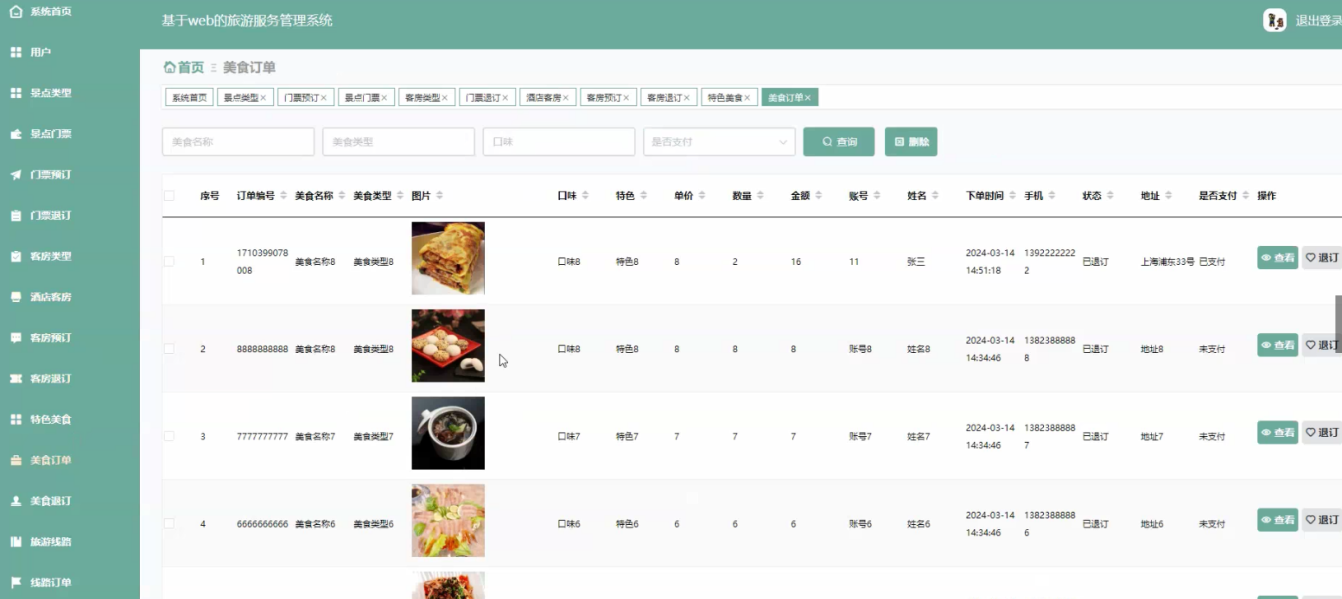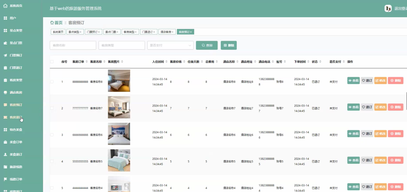 With the rapid development of China's economy and the increasing improvement of people's living standards, people's pursuit of quality of life is also diverse. Especially in the current era where people's pace of life is constantly accelerating, they tend to solve problems in their daily lives without leaving their homes. The tourism service management system has demonstrated its vibrant vitality and broad prospects. At the same time, in order to meet user needs, tourism service management has become increasingly diversified and networked, combined with electronic information technology. The tourism service management system has emerged.