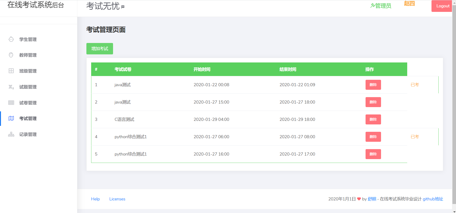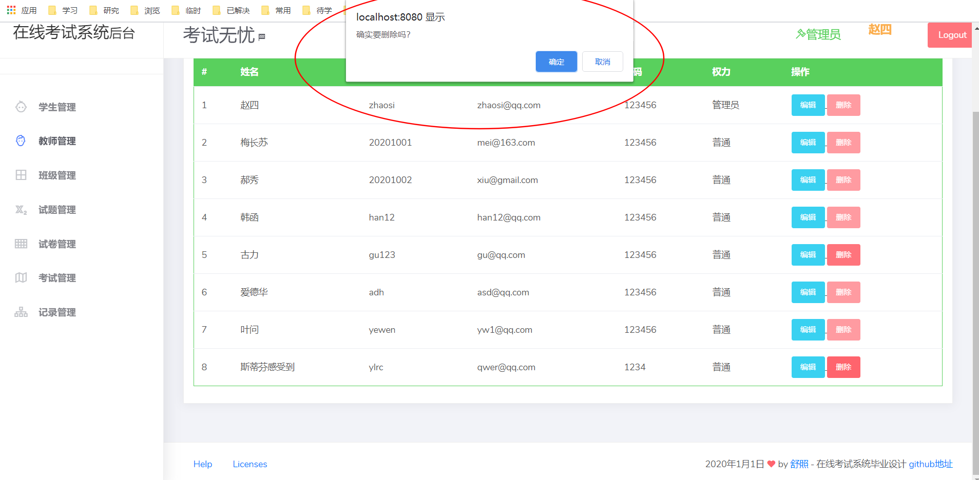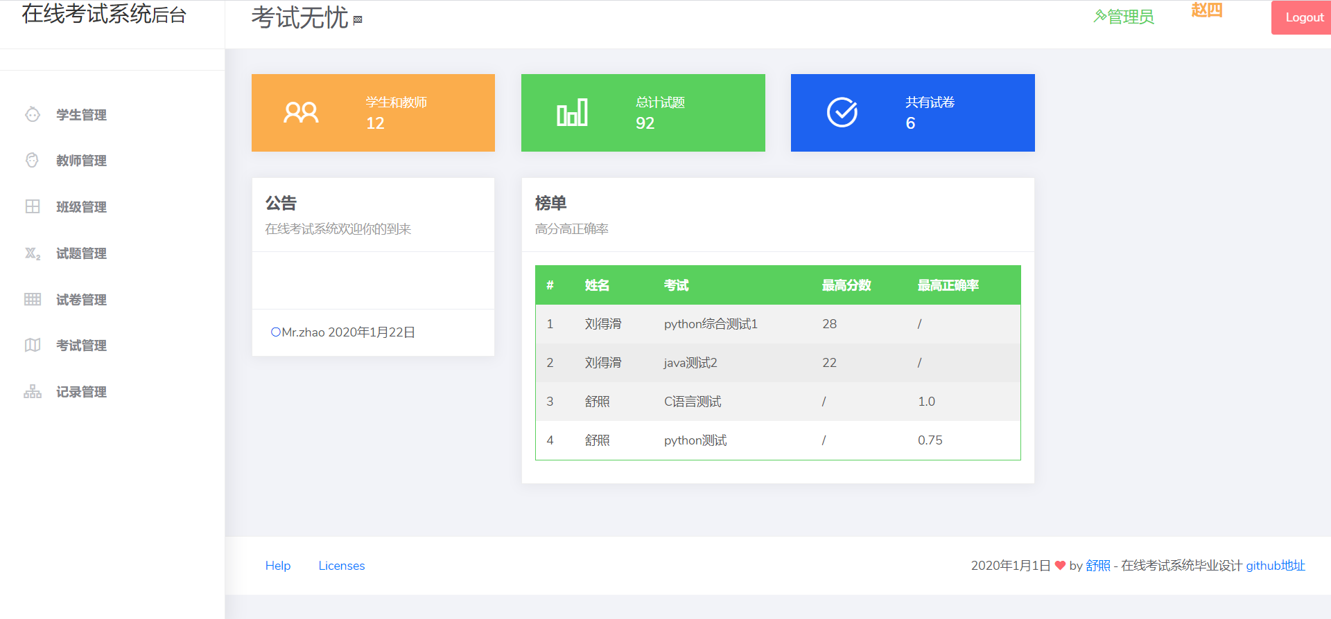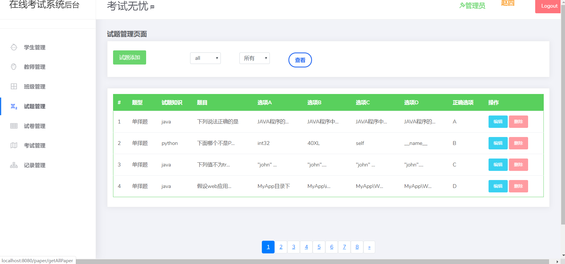 介绍:----* 项目名称:`在线考试系统`* 开发环境:Tomcat9.0 Mysql5.17 springboot、springmvc、mybatis、thymeleaf、bootstrap、maven、druid、jquery、ajax、layer、lombok、 devtools、pagehelper* 开发工具:Navicat+Idea使用步骤1、mysql导入quiz.sql文件2、idea导入pom.xml文件,等待maven依赖导入完成3、修改代码中的数据库名和数据库密码4、即可运行# 基于SpringBoot的在线考试系统开发实践## 一、项目简介在线考试系统是一种通过互联网进行考试管理的系统,能够有效地简化考试流程、提高考试效率。本文将介绍一个基于SpringBoot、SpringMVC、MyBatis等技术开发的在线考试系统,涵盖了从环境搭建到系统部署的全流程。该项目使用了Tomcat作为Web服务器,MySQL作为数据库,并结合了Thymeleaf、Bootstrap等前端技术,旨在提供一个功能完善、操作简便的在线考试平台。## 二、技术选型### 1. 后端技术栈- **SpringBoot**:作为项目的基础框架,简化了配置和部署流程,提高了开发效率。- **SpringMVC**:用于处理Web请求和响应,实现前后端交互。- **MyBatis**:作为持久层框架,简化了数据库操作。- **Druid**:提供数据库连接池,优化数据库访问性能。- **PageHelper**:实现物理分页功能,简化分页查询的实现。- **Lombok**:通过注解简化实体类的编写,减少样板代码。- **Devtools**:提供热部署功能,加快开发调试速度。### 2. 前端技术栈- **Thymeleaf**:作为模板引擎,用于生成动态HTML页面。- **Bootstrap**:用于快速构建响应式界面,提升用户体验。- **jQuery + Ajax**:简化DOM操作和异步请求,增强页面交互性。- **Layer**:提供弹出层组件,用于显示提示信息和操作反馈。### 3. 开发工具- **IntelliJ IDEA**:作为主要的集成开发环境,提供强大的代码提示和调试功能。- **Navicat**:用于数据库管理和SQL脚本执行,简化数据库操作。## 三、开发环境搭建### 1. 环境准备- **Tomcat 9.0**:下载并安装Tomcat服务器,配置环境变量。- **MySQL 5.17**:安装MySQL数据库,创建数据库实例。- **JDK 1.8+**:确保Java开发环境已正确安装。### 2. 数据库初始化- 使用Navicat等工具连接到MySQL服务器。- 创建新的数据库,并导入提供的`quiz.sql`文件,初始化数据库表结构及数据。### 3. 项目导入与配置- 打开IntelliJ IDEA,选择“File” -> “Open”,导入项目的`pom.xml`文件。- 等待Maven依赖下载完成,确保所有依赖项正确加载。- 修改`application.properties`或`application.yml`文件,配置数据库连接信息(用户名、密码、数据库名等)。## 四、系统功能模块### 1. 用户管理- **功能描述**:支持用户注册、登录、信息修改等功能。- **实现细节**:使用Spring Security进行用户认证和权限管理,确保系统的安全性。### 2. 考试管理- **功能描述**:管理员可以创建、编辑、删除考试,设置考试时间、题目数量等参数。- **实现细节**:通过MyBatis进行数据库操作,使用Thymeleaf渲染考试列表和编辑表单。### 3. 题目管理- **功能描述**:支持题目的增删改查,包括选择题、填空题、判断题等多种题型。- **实现细节**:使用MyBatis进行题目数据的持久化,通过Ajax实现题目的动态加载和提交。### 4. 考试参加- **功能描述**:考生可以查看考试列表,选择参加考试,并在规定时间内完成答题。- **实现细节**:使用Session或Token管理考生考试状态,通过Ajax实现题目的动态展示和答案提交。### 5. 成绩管理- **功能描述**:系统自动批改客观题,管理员可以查看和导出考试成绩。- **实现细节**:使用MyBatis进行成绩数据的存储和查询,通过Thymeleaf展示成绩列表和详细信息。## 五、系统实现细节### 1. 数据库设计- **用户表**:存储用户的基本信息,如用户名、密码、邮箱等。- **考试表**:存储考试的基本信息,如考试名称、时间、题目数量等。- **题目表**:存储题目的详细信息,包括题型、题目内容、选项、答案等。- **成绩表**:存储考生的考试成绩,关联用户表和考试表。### 2. 代码结构- **Controller层**:处理Web请求,调用Service层进行业务处理。- **Service层**:实现业务逻辑,调用Dao层进行数据库操作。- **Dao层**:使用MyBatis进行数据库访问,定义SQL映射。- **Model层**:定义实体类,映射数据库表结构。- **Util层**:提供工具类,如加密解密、分页工具等。### 3. 界面实现- **登录界面**:简洁的登录表单,用户输入用户名和密码进行登录。- **考试列表界面**:展示所有可参加的考试,用户可以选择参加。- **考试界面**:动态展示题目,用户可以选择答案并提交。- **成绩界面**:展示用户的考试成绩,提供成绩导出功能。## 六、系统部署与运行### 1. 项目打包- 在IntelliJ IDEA中,选择“File” -> “Project Structure” -> “Artifacts”,配置项目的打包方式。- 选择“Build” -> “Build Artifacts”,生成WAR文件。### 2. 部署到Tomcat- 将生成的WAR文件复制到Tomcat的`webapps`目录下。- 启动Tomcat服务器,访问`http://localhost:8080/项目名`,即可访问系统。### 3. 系统测试- 注册新用户并登录系统。- 创建新的考试并添加题目。- 考生参加考试并提交答案。- 管理员查看考试成绩并导出。## 七、总结与展望在线考试系统基于SpringBoot、SpringMVC、MyBatis等技术开发,实现了用户管理、考试管理、题目管理、考试参加、成绩管理等核心功能。系统具有以下特点:- **高效稳定**:使用SpringBoot框架,简化开发流程,提高系统稳定性。- **易用性强**:界面简洁直观,操作方便,用户可以快速上手。- **扩展性好**:系统架构清晰,易于扩展和维护,可以根据需求添加新功能。未来,