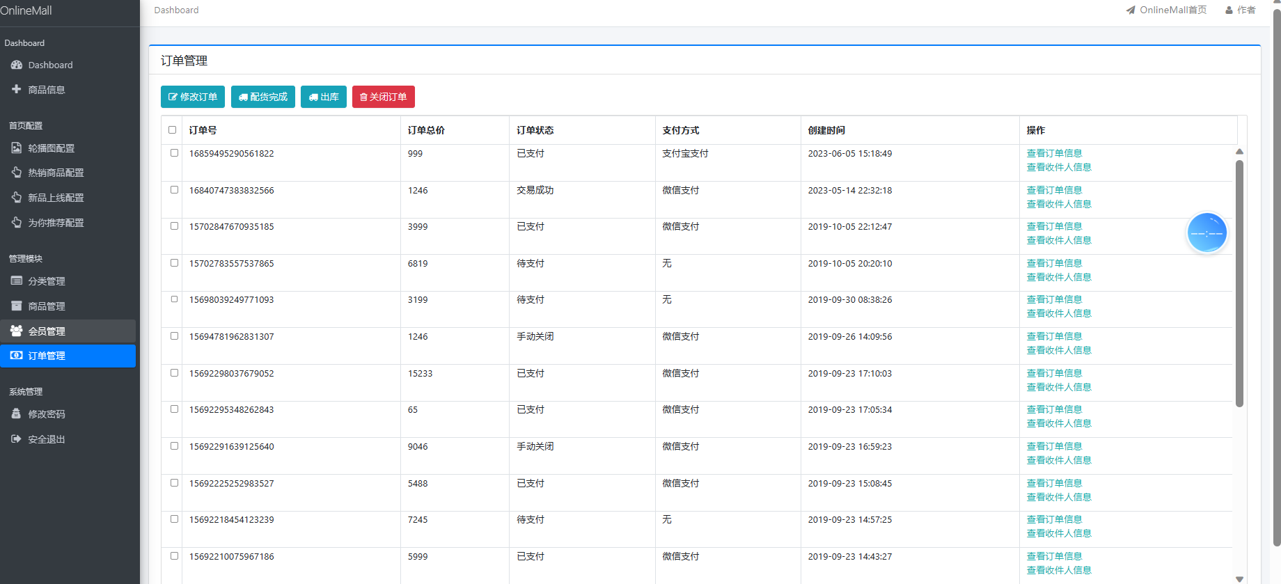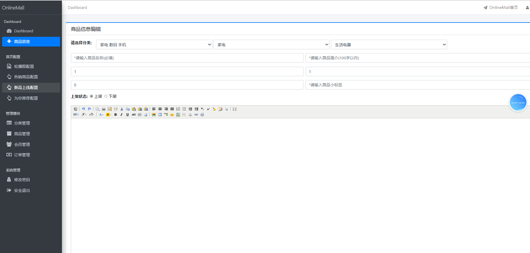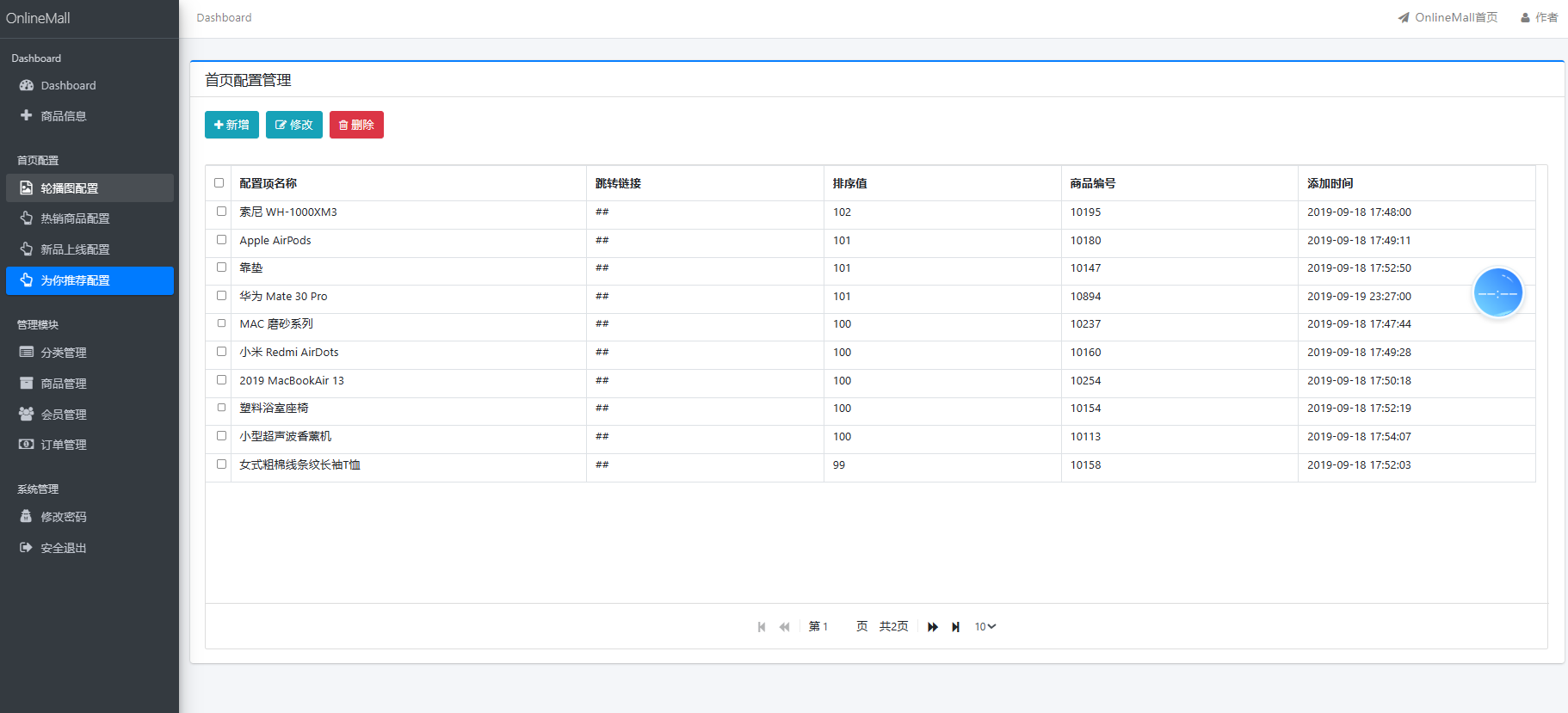 # 基于SpringBoot与MySQL的OnlineMall商城管理系统开发实践## 一、项目背景随着电子商务的快速发展,商城管理系统成为企业开展在线业务的重要工具。OnlineMall商城管理系统是一个基于SpringBoot和MySQL开发的B2C电商平台,旨在为企业提供一个高效、稳定、易用的电商解决方案。本文将详细介绍该系统的开发过程和技术要点。## 二、技术选型### 1. 后端技术栈- **SpringBoot 2.x**:作为项目的基础框架,提供快速开发和集成的便利。- **Spring MVC**:处理Web请求和响应。- **MyBatis**:作为持久层框架,简化数据库操作。- **Spring Security**:用于用户认证和权限管理(虽然截图未直接展示,但通常此类系统会集成)。- **MySQL 5.7+**:作为关系型数据库,存储系统数据。### 2. 前端技术栈- **Bootstrap**:用于快速构建响应式界面。- **jQuery**:简化DOM操作和AJAX请求。- **JSP**:作为视图层技术,展示动态内容。## 三、系统功能模块### 1. 登录模块- **功能描述**:用户通过输入用户名和密码进行登录,系统验证用户身份。- **实现细节**:使用Spring Security进行用户认证,确保系统的安全性。### 2. 首页模块- **功能描述**:展示系统的主要功能和导航菜单。- **实现细节**:通过JSP页面展示系统介绍和功能导航,用户可以快速访问各个模块。### 3. 商品信息管理- **功能描述**:管理员可以添加、修改、删除商品信息,包括商品名称、简介、图片、库存、售价等。- **实现细节**:使用MyBatis进行数据库操作,通过JSP页面展示商品列表和编辑表单。### 4. 轮播图管理- **功能描述**:管理员可以配置首页轮播图,包括图片链接、跳转链接和排序值。- **实现细节**:通过数据库表存储轮播图信息,使用MyBatis进行增删改查操作。### 5. 首页配置管理- **功能描述**:管理员可以配置首页展示的商品,如热销商品、新品上线等。- **实现细节**:通过数据库表存储配置信息,系统根据配置动态展示商品。### 6. 分类管理- **功能描述**:管理员可以管理商品分类,包括添加、修改、删除分类。- **实现细节**:使用树形结构展示分类层级,通过MyBatis进行数据库操作。### 7. 会员管理- **功能描述**:管理员可以查看和管理会员信息,包括禁用或启用账户。- **实现细节**:通过数据库表存储会员信息,系统提供界面进行会员状态管理。## 四、系统实现细节### 1. 数据库设计- **商品表**:存储商品的基本信息,如商品编号、名称、简介、图片、库存、售价等。- **轮播图表**:存储轮播图的图片链接、跳转链接和排序值。- **首页配置表**:存储首页展示的商品配置信息。- **分类表**:存储商品分类信息,支持多级分类。- **会员表**:存储会员的登录名、昵称、身份状态等信息。### 2. 代码结构- **Controller层**:处理Web请求,调用Service层进行业务处理。- **Service层**:实现业务逻辑,调用Dao层进行数据库操作。- **Dao层**:使用MyBatis进行数据库访问,定义SQL映射。- **Model层**:定义实体类,映射数据库表结构。### 3. 界面实现- **登录界面**:简洁的登录表单,用户输入用户名和密码。- **首页界面**:展示系统功能和导航菜单,提供快速访问入口。- **商品管理界面**:列表展示商品信息,提供添加、修改、删除操作。- **轮播图管理界面**:列表展示轮播图信息,提供增删改查功能。- **首页配置界面**:列表展示首页配置信息,管理员可以配置展示商品。- **分类管理界面**:树形结构展示分类信息,提供增删改查功能。- **会员管理界面**:列表展示会员信息,管理员可以管理会员状态。## 五、系统部署与运行### 1. 环境准备- **JDK 1.8+**:确保Java开发环境已安装。- **MySQL 5.7+**:安装并启动MySQL数据库,创建数据库和用户。- **Tomcat 8+**:作为Web服务器,部署SpringBoot应用。### 2. 项目部署- **导入项目**:将项目导入Eclipse或IntelliJ IDEA等开发工具。- **配置数据库**:修改`application.properties`文件,配置数据库连接信息。- **打包部署**:使用Maven打包项目,生成WAR文件,部署到Tomcat服务器。### 3. 系统访问- **登录系统**:访问`http://localhost:8080/OnlineMall`,输入用户名和密码登录。- **使用系统**:登录后,用户可以根据权限访问各个模块,进行商品管理、轮播图配置、首页配置等操作。## 六、总结与展望OnlineMall商城管理系统基于SpringBoot和MySQL开发,实现了商品管理、轮播图管理、首页配置、分类管理、会员管理等核心功能。系统具有以下特点:- **高效稳定**:使用SpringBoot框架,简化开发流程,提高系统稳定性。- **易用性强**:界面简洁直观,操作方便,管理员可以快速上手。- **扩展性好**:系统架构清晰,易于扩展和维护,可以根据业务需求添加新功能。未来,可以进一步优化系统性能,增加更多功能模块,如订单管理、支付集成等,提升系统的完整性和实用性。通过本文的介绍,希望能够帮助开发者更好地理解和实现基于SpringBoot和MySQL的商城管理系统。完整项目源码已开源,欢迎下载学习和贡献。