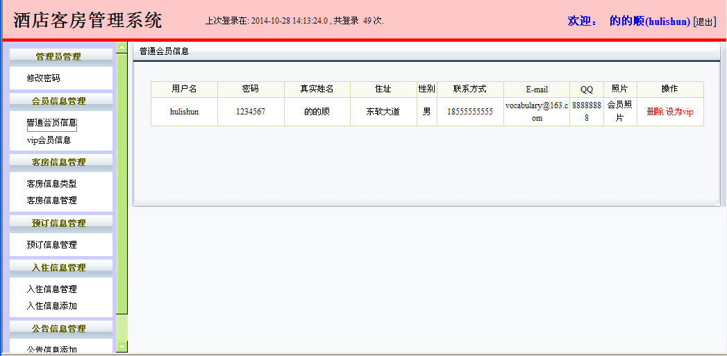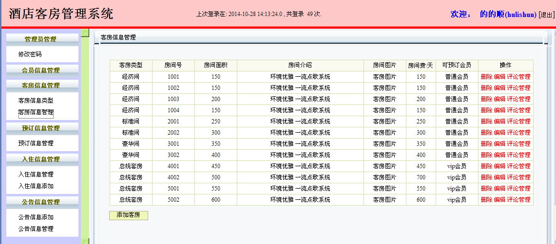 在开发过程中,我们采用了JSP作为后端开发技术,MySQL作为数据库管理系统,并结合MyEclipse这一强大的开发工具,共同构建了一个功能完善、性能稳定的酒店预订系统。该系统不仅支持基本的酒店预订功能,还提供了会员信息管理、入住信息管理、公告信息发布等多种附加功能,进一步增强了系统的实用性和便捷性。