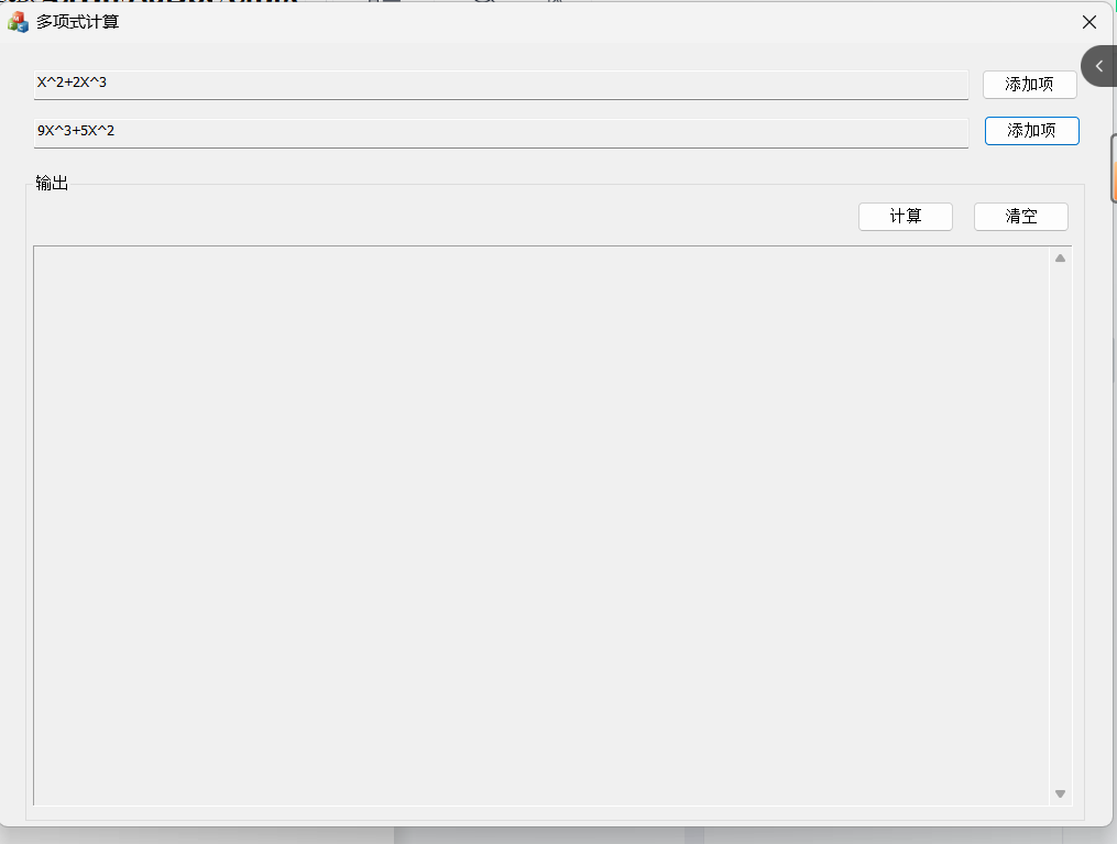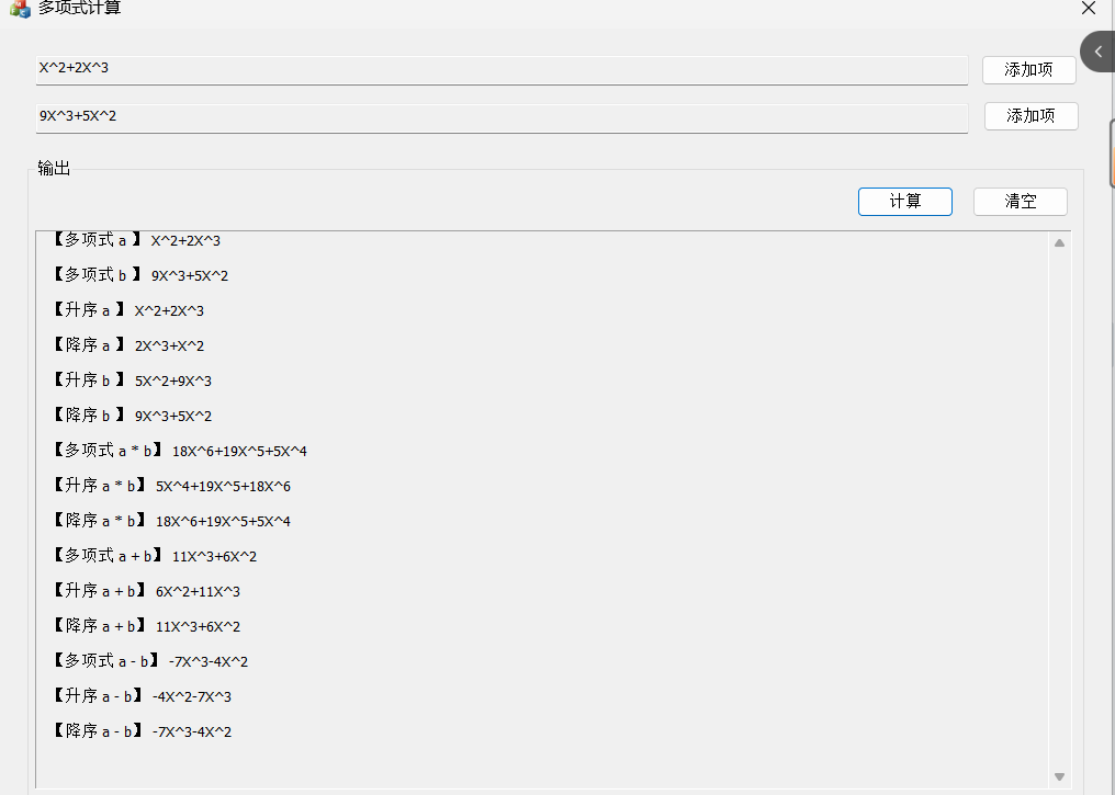 要求结果M(x)中无重复阶项和无零系数项,并且输出结果有升幂和降幂两种排列情况。