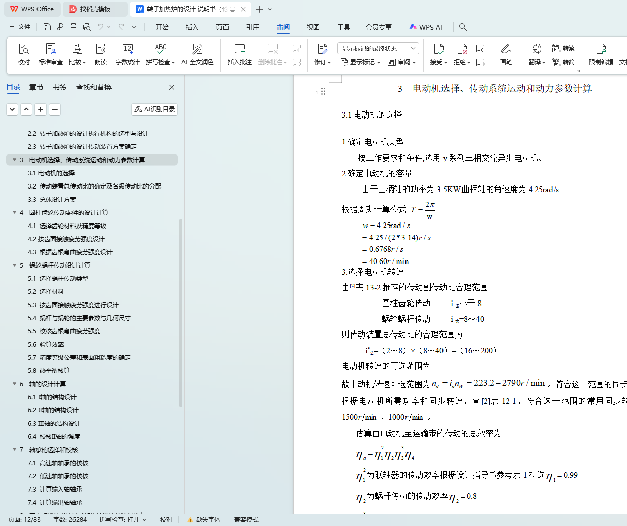 3 电动机选择、传动系统运动和动力参数计算