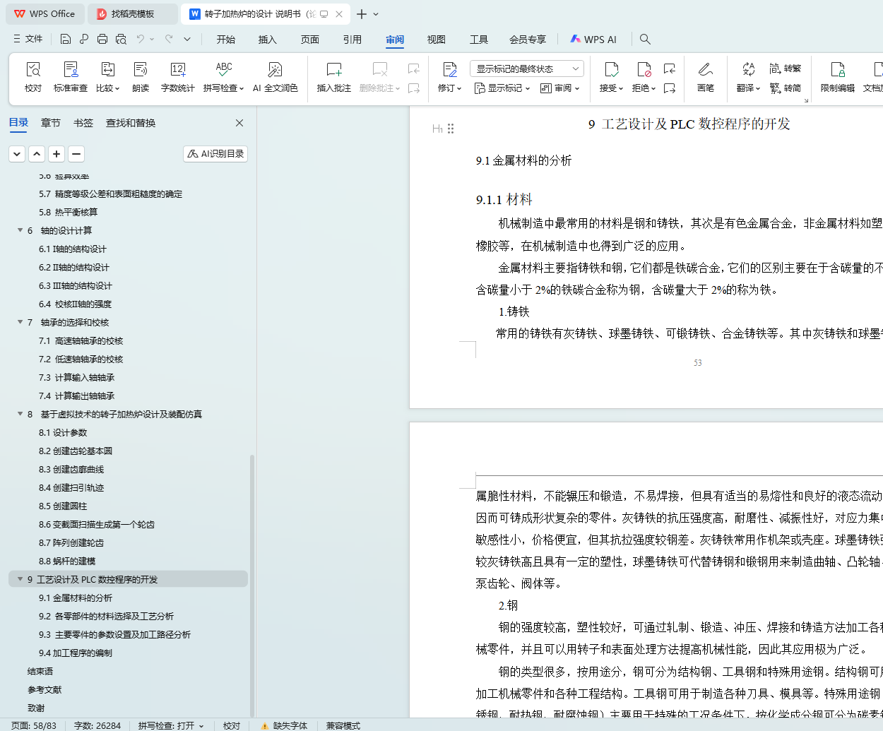 9.2 各零部件的材料选择及工艺分析