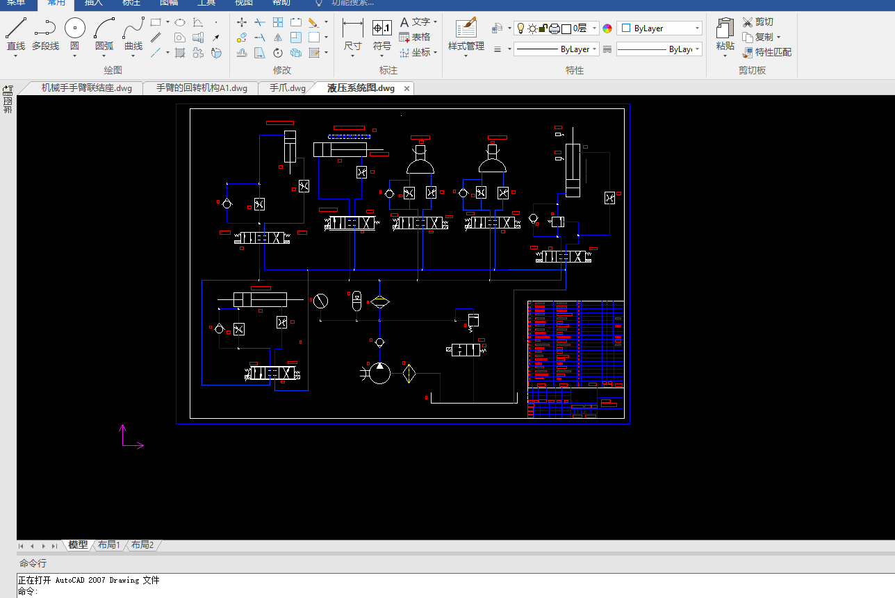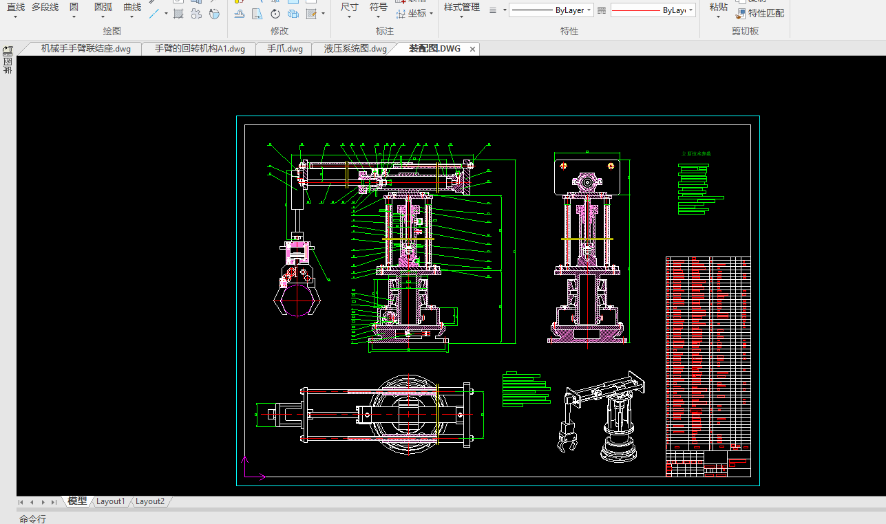 本次设计的四自由度自动上下料机构,基于数控车床的实际加工需求与空间布局,综合运用了机械设计、液压传动与控制等专业知识。机构的机械结构主要由油缸、螺杆、导向筒等机械器件组成,确保了运动的精确性和稳定性。在液压传动系统中,手臂的伸缩、手腕的回转、立柱的转动、机构的升降以及立柱的横移等功能均通过相应的油缸实现。通过控制电磁阀的开关,可以精确地控制机构进行相应的动作循环,从而实现自动上下料的功能。当按下连续停止按钮后,机构在完成一个动作循环后会停止运动,保证了操作的安全性和灵活性。